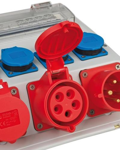 - 1x Brennenstuhl Kunststoffwandverteiler CEE-32A,5-polig 1xCEE 16 A,1xCEE 32A,4x230V