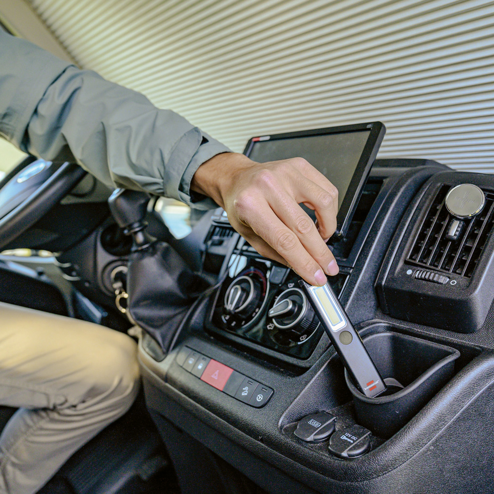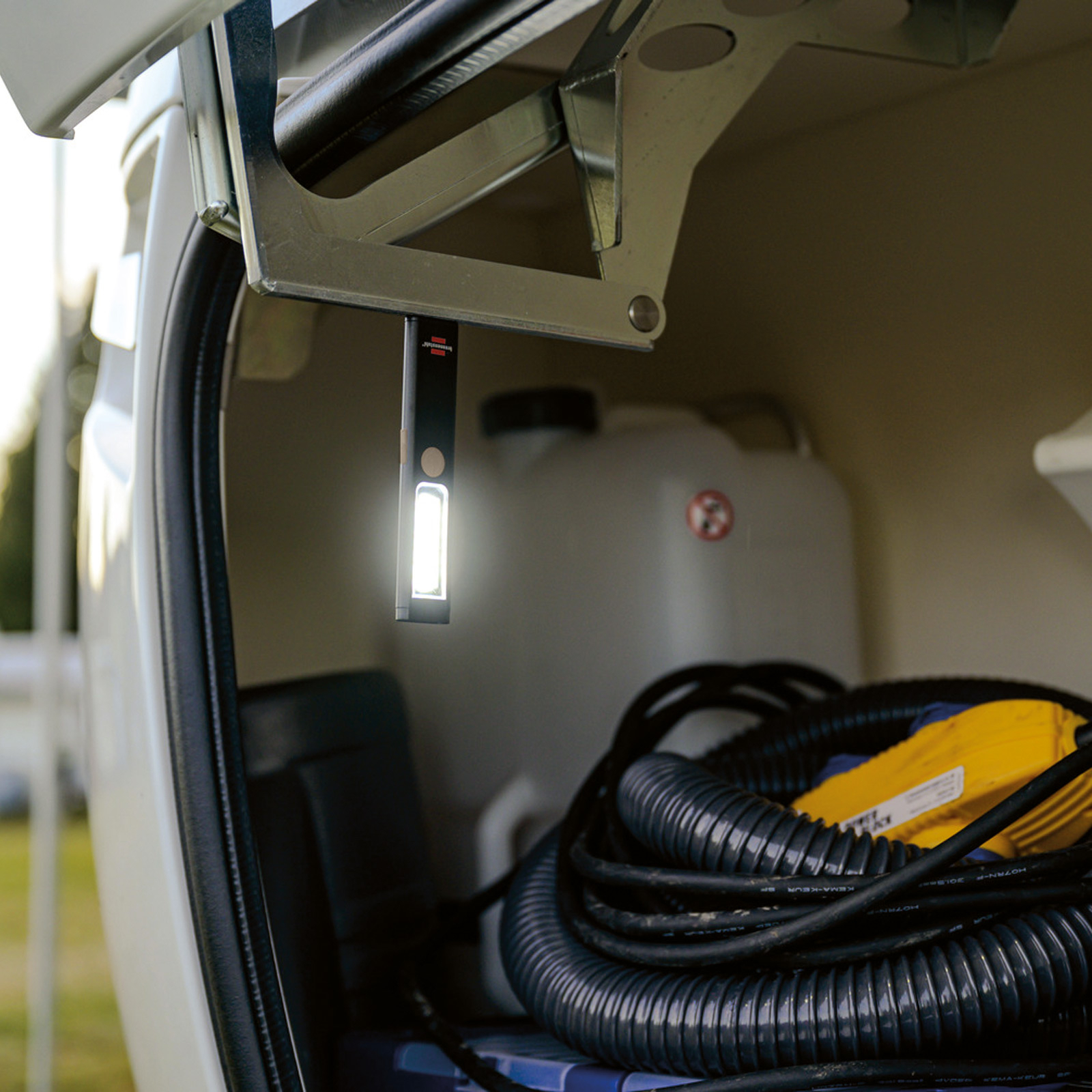 - Die Inspektionsleuchte mit COB LED und USB C-Port kann dank praktischem Clip z. B. an Taschen oder Gürtel angebracht werden, zudem lässt sie sich dank Magnet im Fuß an Metalloberflächen anbringen