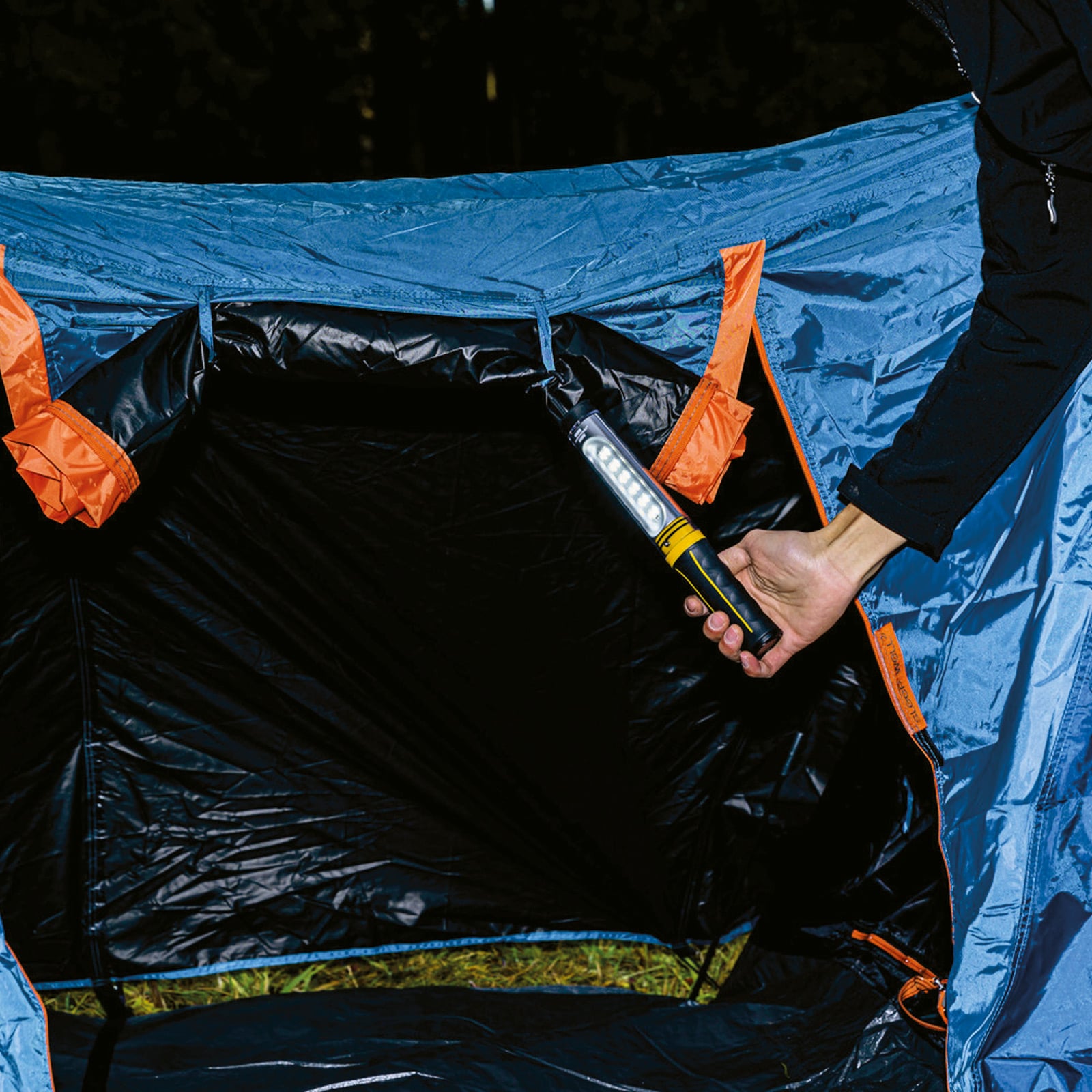 - LED Arbeitsleuchte mit integriertem Magnet im Standfuß und stabilen drehbaren Haken zum Befestigen