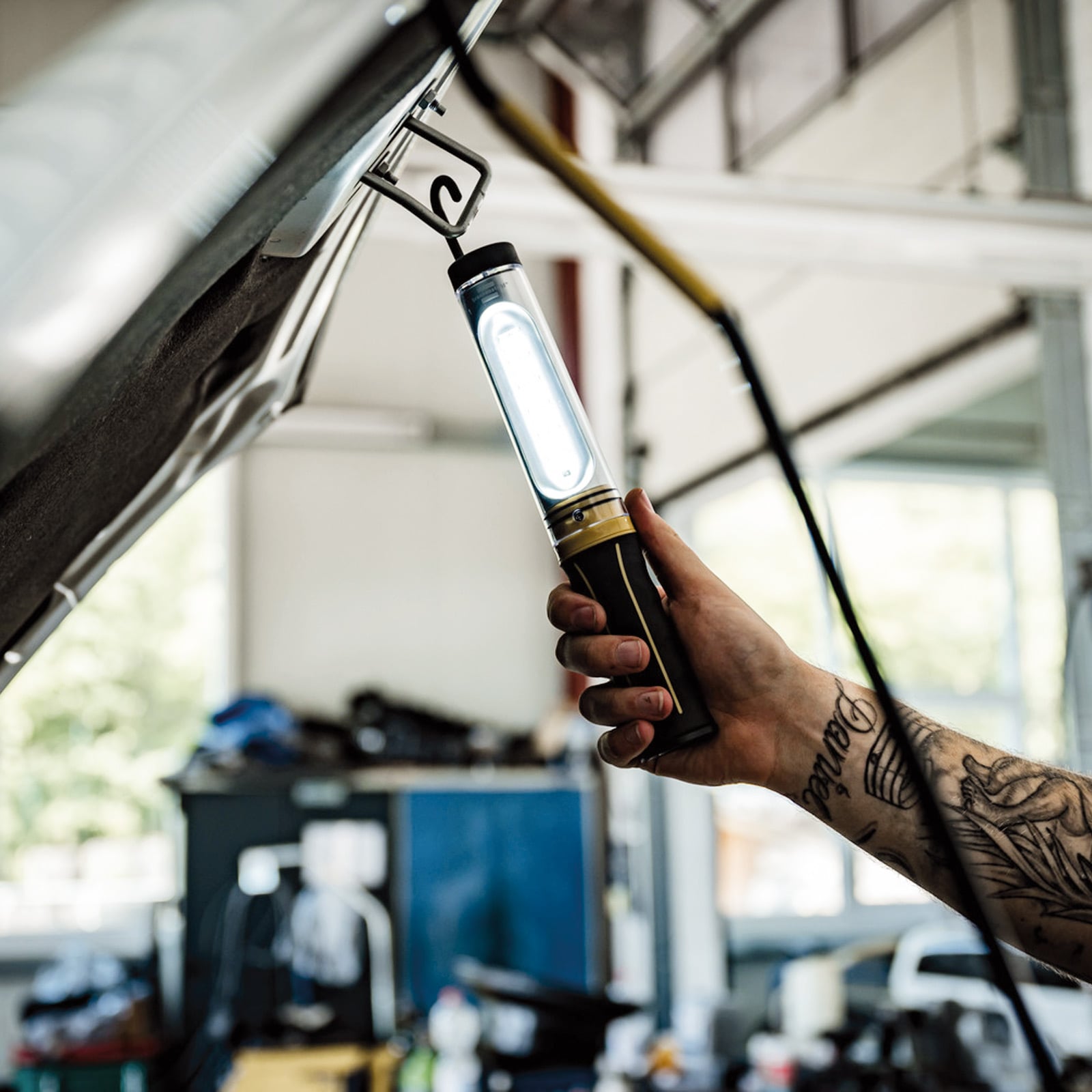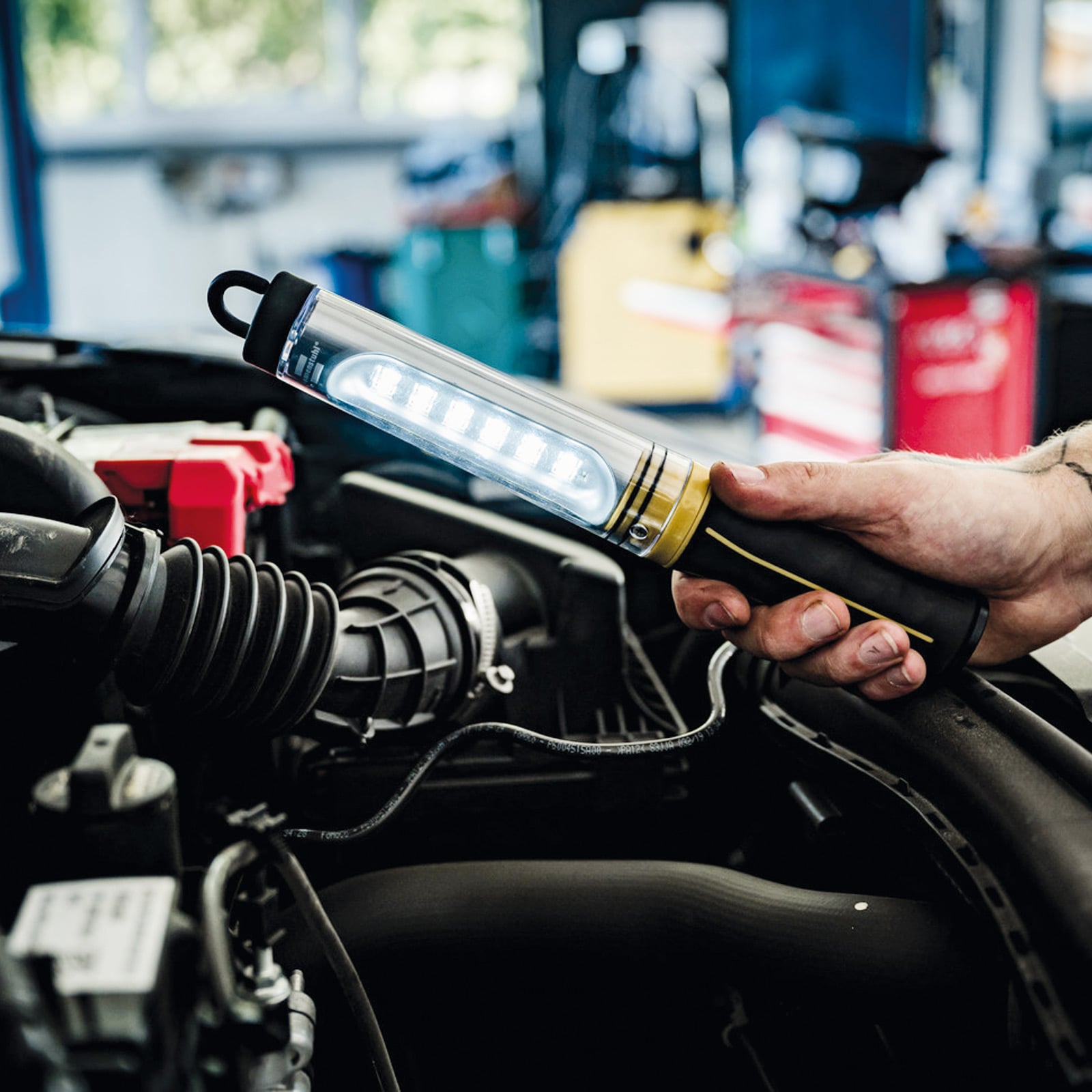 - Aufladbare Werkstattleuchte mit ergonomischen Gummihandgriff und schlag- und bruchfester Schutzschale, ideal für den Einsatz in der Werkstatt, Garage oder diverse Indoor/Outdoor-Aktivitäten