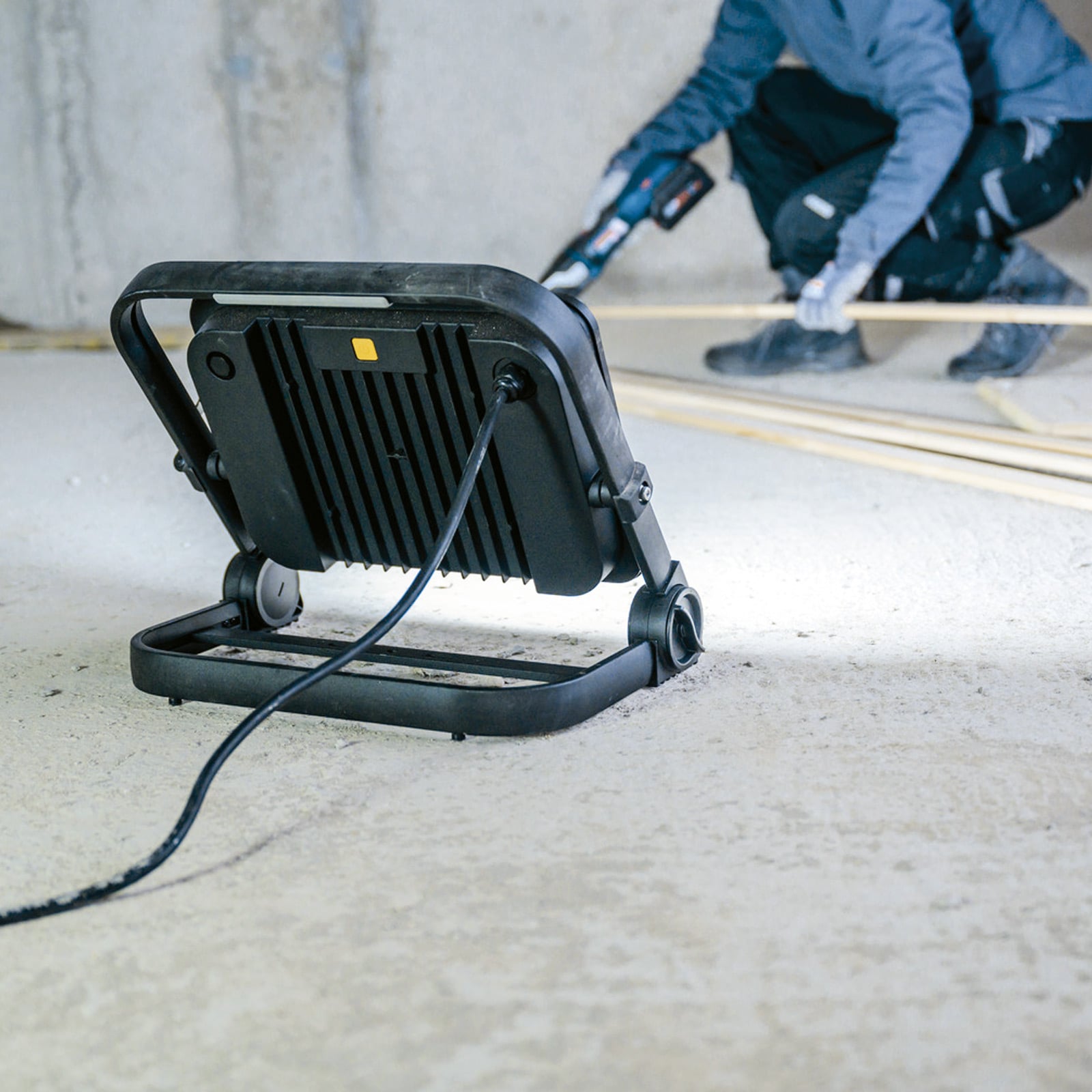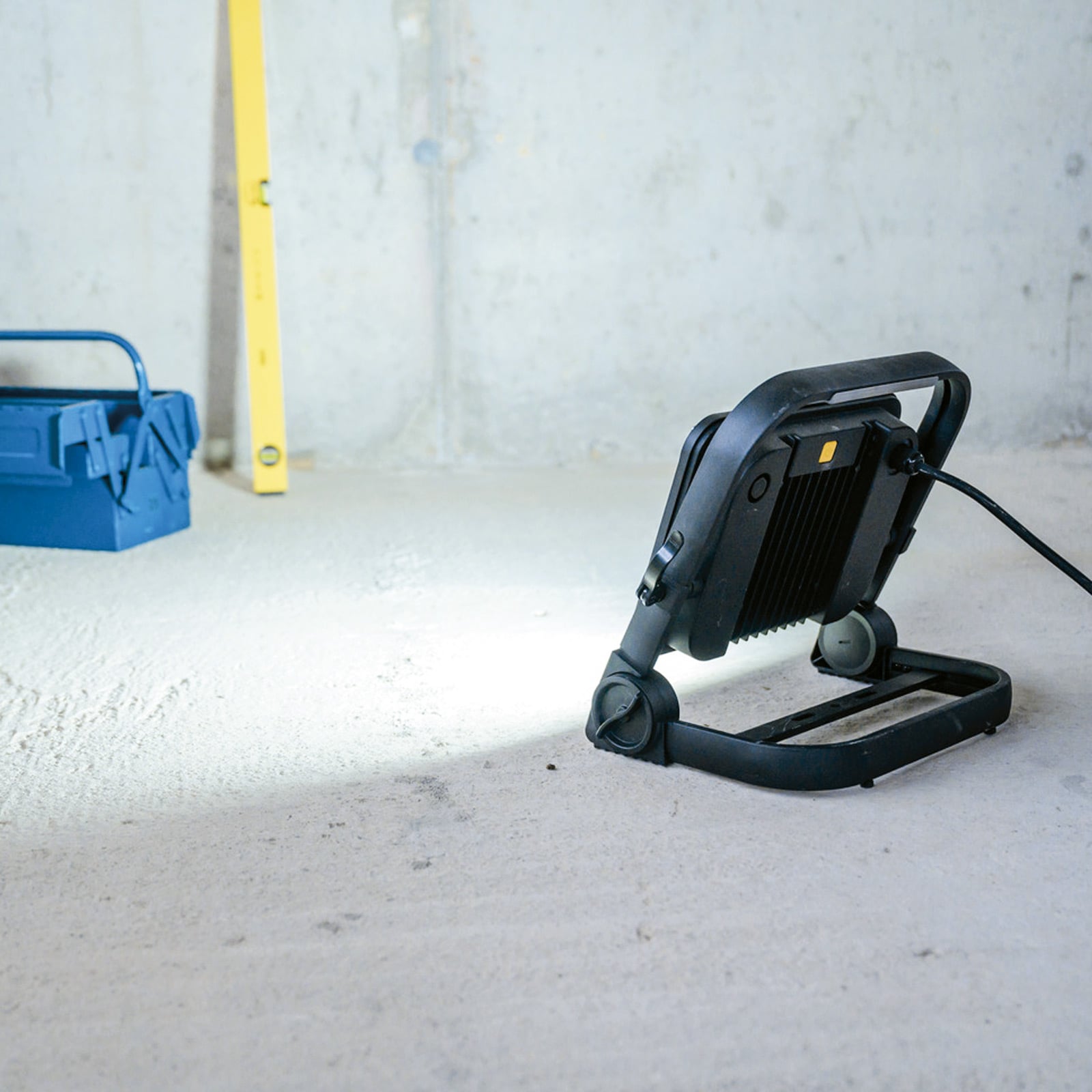 - LED Baustrahler mit leichtem und klappbarem Alurahmen, Kunststoff-Schutzecken und Tragegriff - perfekt für die Verwendung auf Baustellen, in Garagen oder Werkstätten