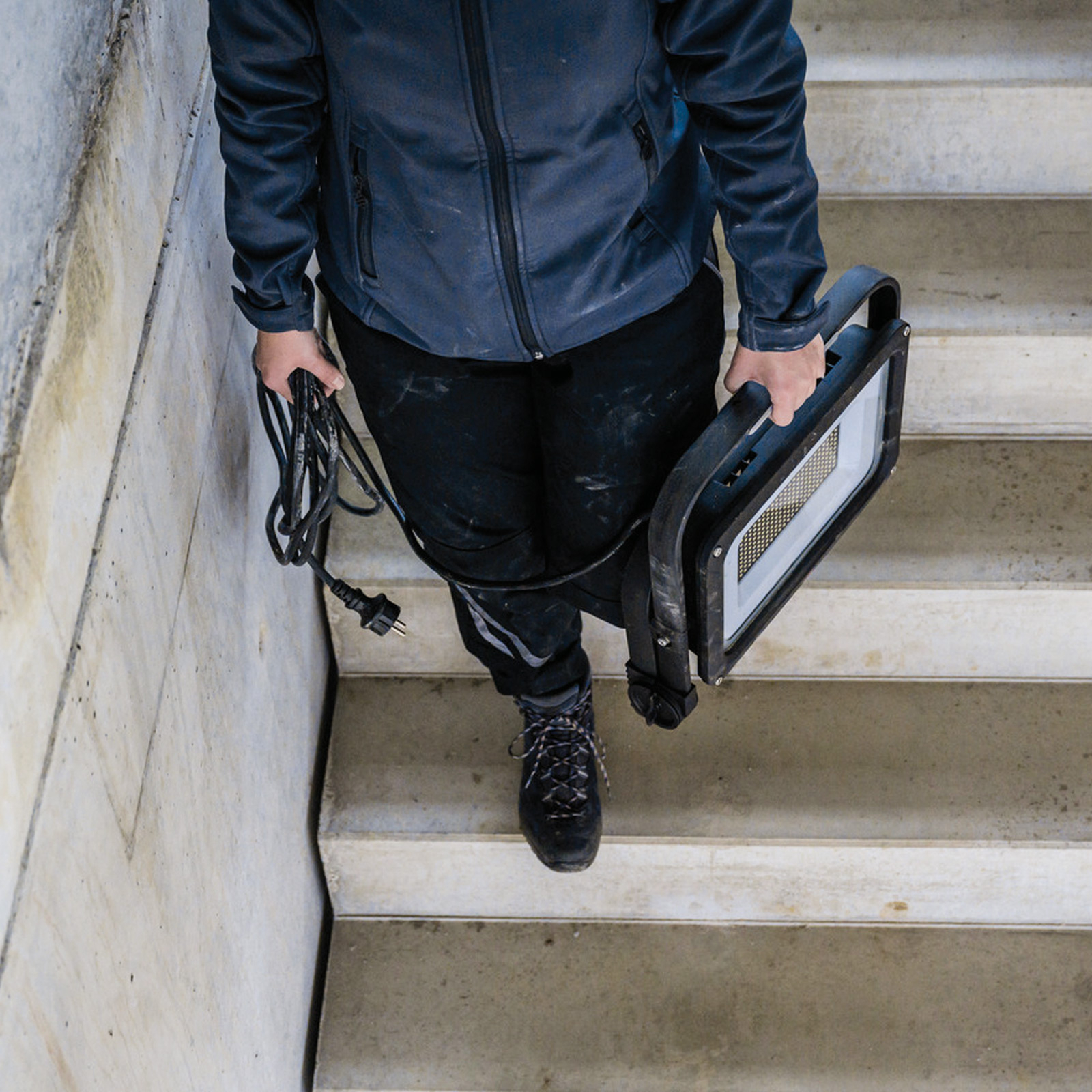 - Mobiler LED Strahler JARO mit 5m Kabellänge (H07RN-F 3G1.0) und einer Frontscheibe aus Sicherheitsglas