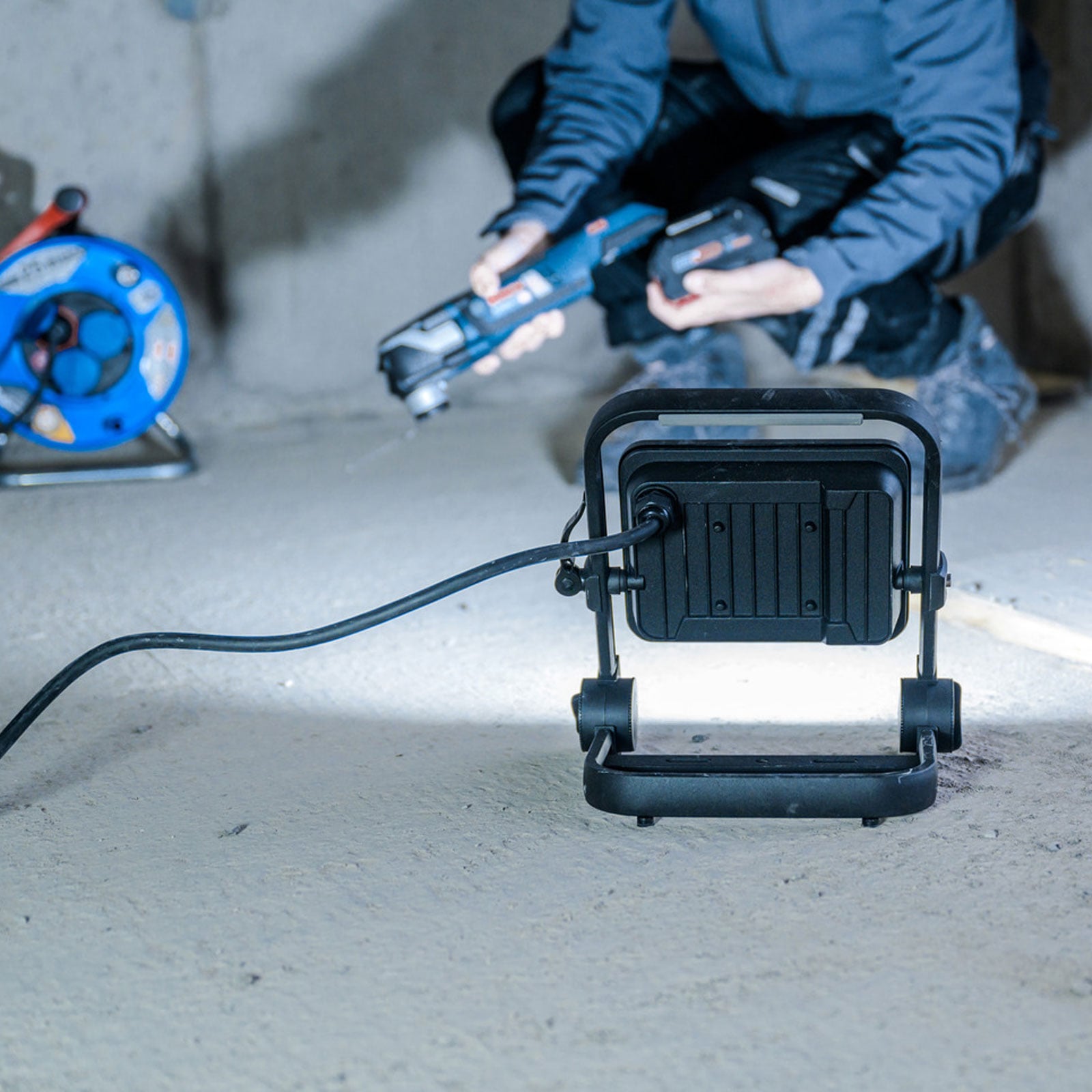 Der mobile LED Strahler JARO 4060 M von Brennenstuhl ist ein extrem energieeffizienter LED-Baustrahler mit 30W Leistung, der höchsten Ansprüchen gerecht wird. Er überzeugt außerdem durch seine extrem flache Bauform und seine Kompaktheit. Die verbauten Everlight SMD-LEDs sorgen für eine außergewöhnlich lange Lebensdauer und ihre spezielle Lichtstreuung für großflächige Ausleuchtung. Zudem überzeugt der LED-Strahler durch folgende Eigenschaften: