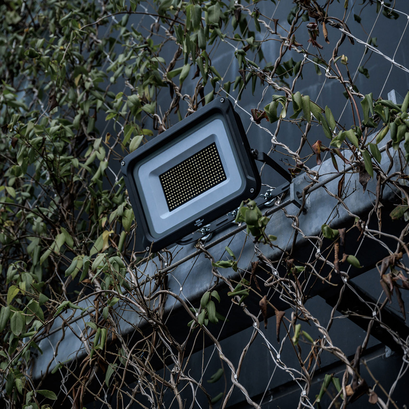 Der LED Strahler JARO 20060 zur Wandmontage von Brennenstuhl ist ein extrem energieeffizienter LED-Fluter mit 150W Leistung, der höchsten Ansprüchen gerecht wird. Er überzeugt außerdem durch seine extrem flache Bauform und seine Robustheit. Die verbauten Everlight SMD-LEDs sorgen für eine außergewöhnlich lange Lebensdauer und ihre spezielle Lichtstreuung für großflächige Ausleuchtung. Zudem überzeugt der LED-Strahler durch folgende Eigenschaften: