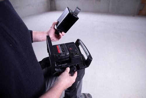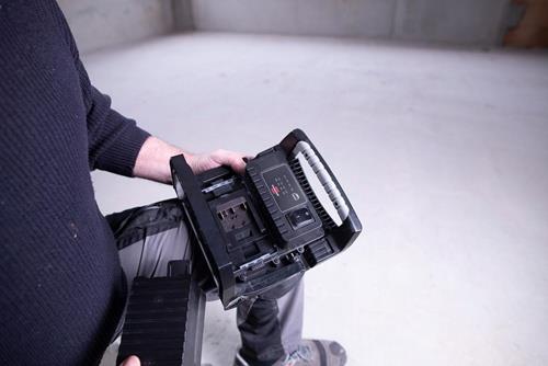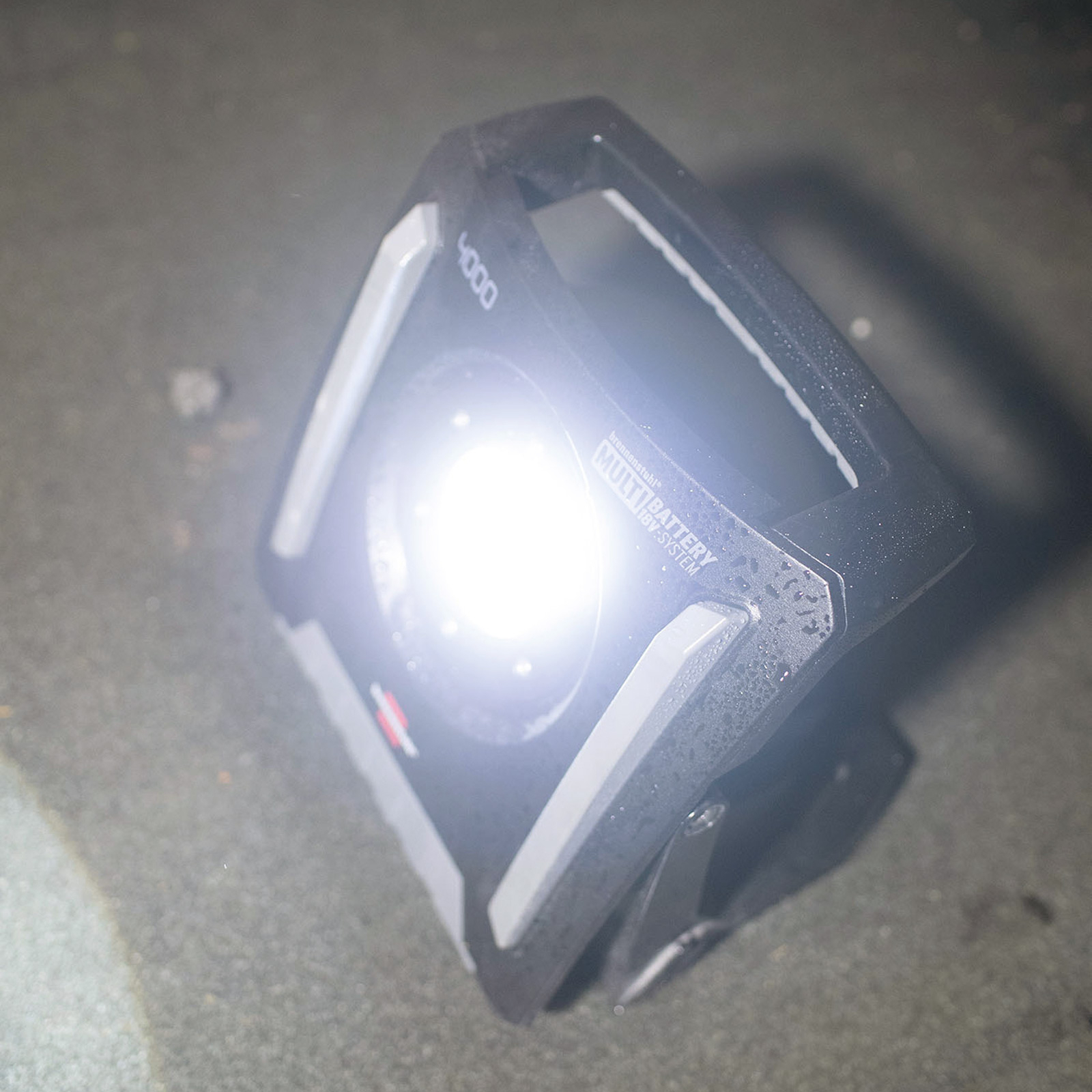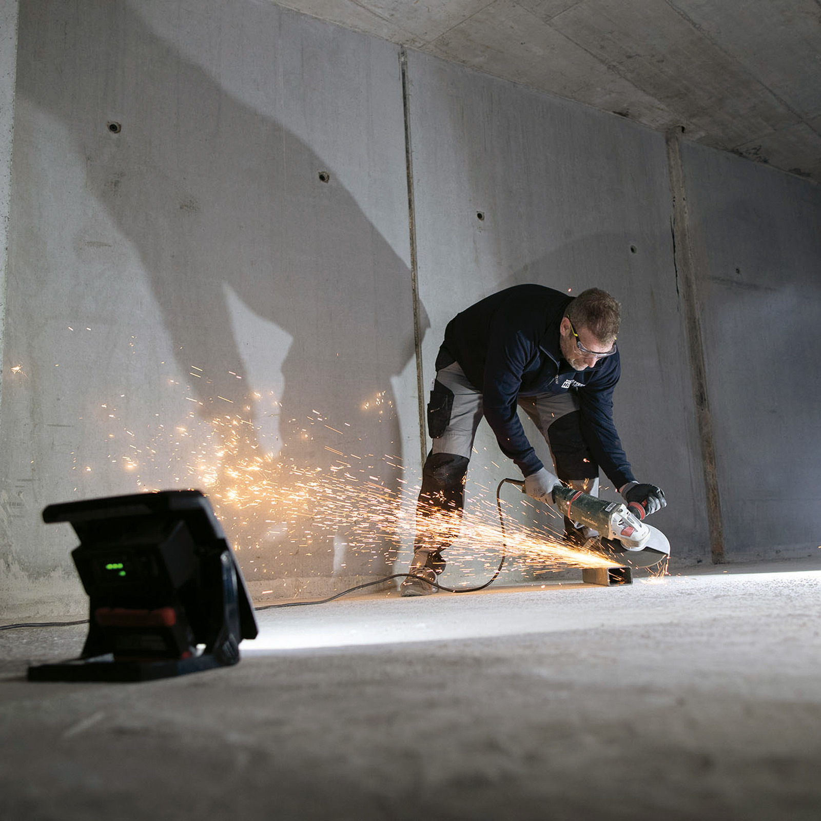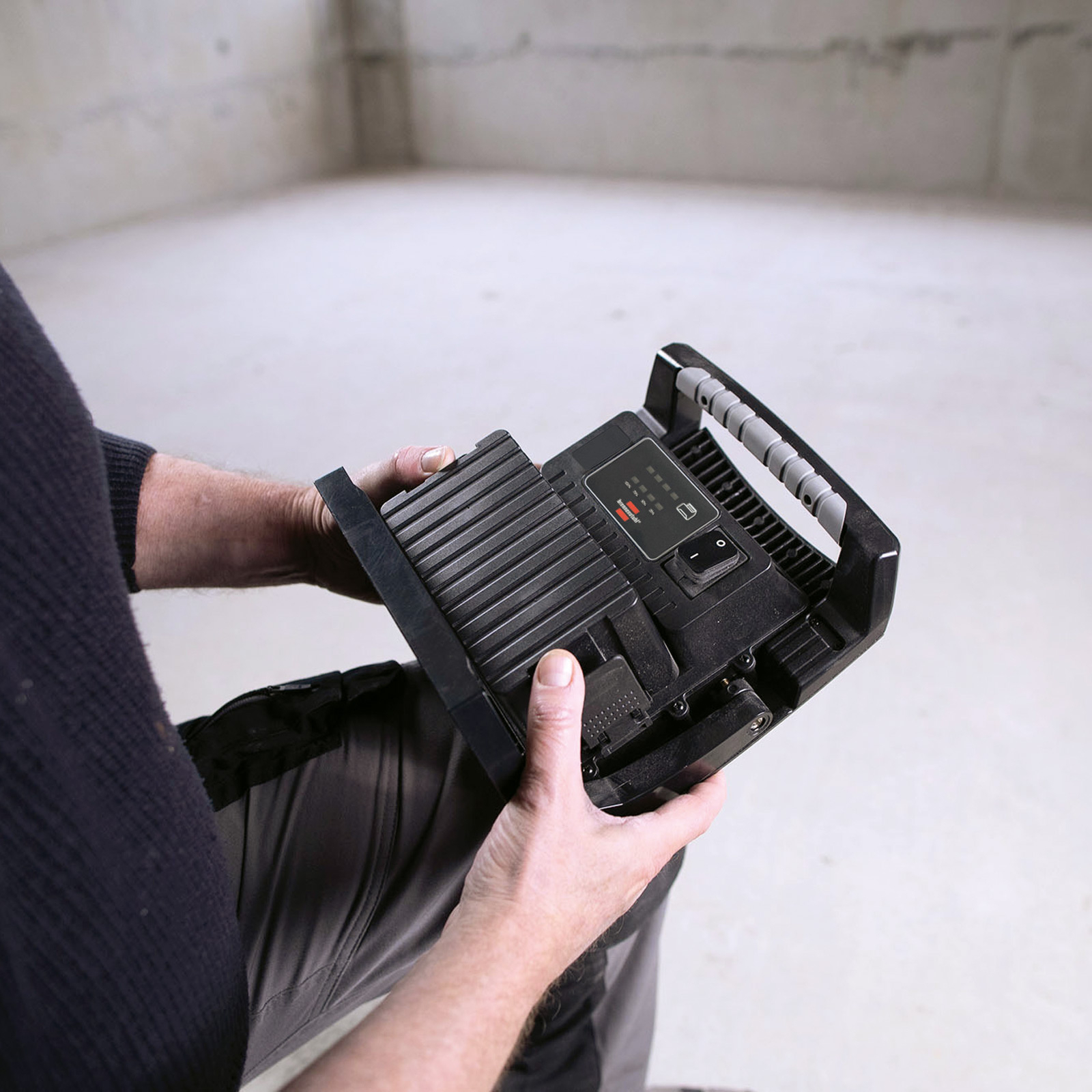 - Baustellenstrahler mit 4 Schaltstufen (100% - 75% - 50% - 25%) und Schutzsystem für Powertool Akkus: vor Tiefenentladung, Überhitzung (hervorgerufen durch hohe Lastströme) und Batteriefehler geschützt