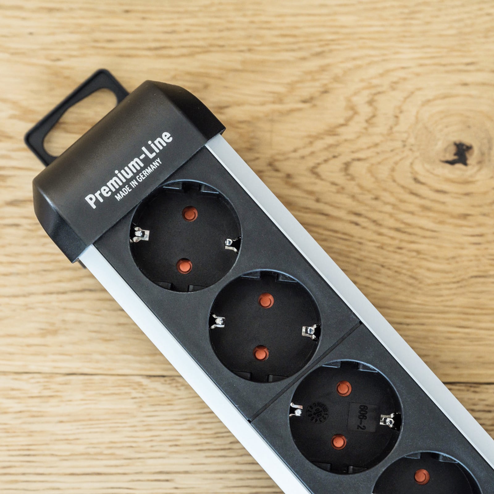 Die Premium-Protect-Line 6-fach Mehrfach-Steckdosenleiste von Brennenstuhl in der Farbe silber/schwarz, mit 2 USB-Ladebuchsen und 3m Kabel besticht durch ihre Qualität und Sicherheit in allen Bereichen. Sie verfügt nicht nur über einen erhöhten Berührungsschutz, sondern überzeugt außerdem durch folgende Eigenschaften:
