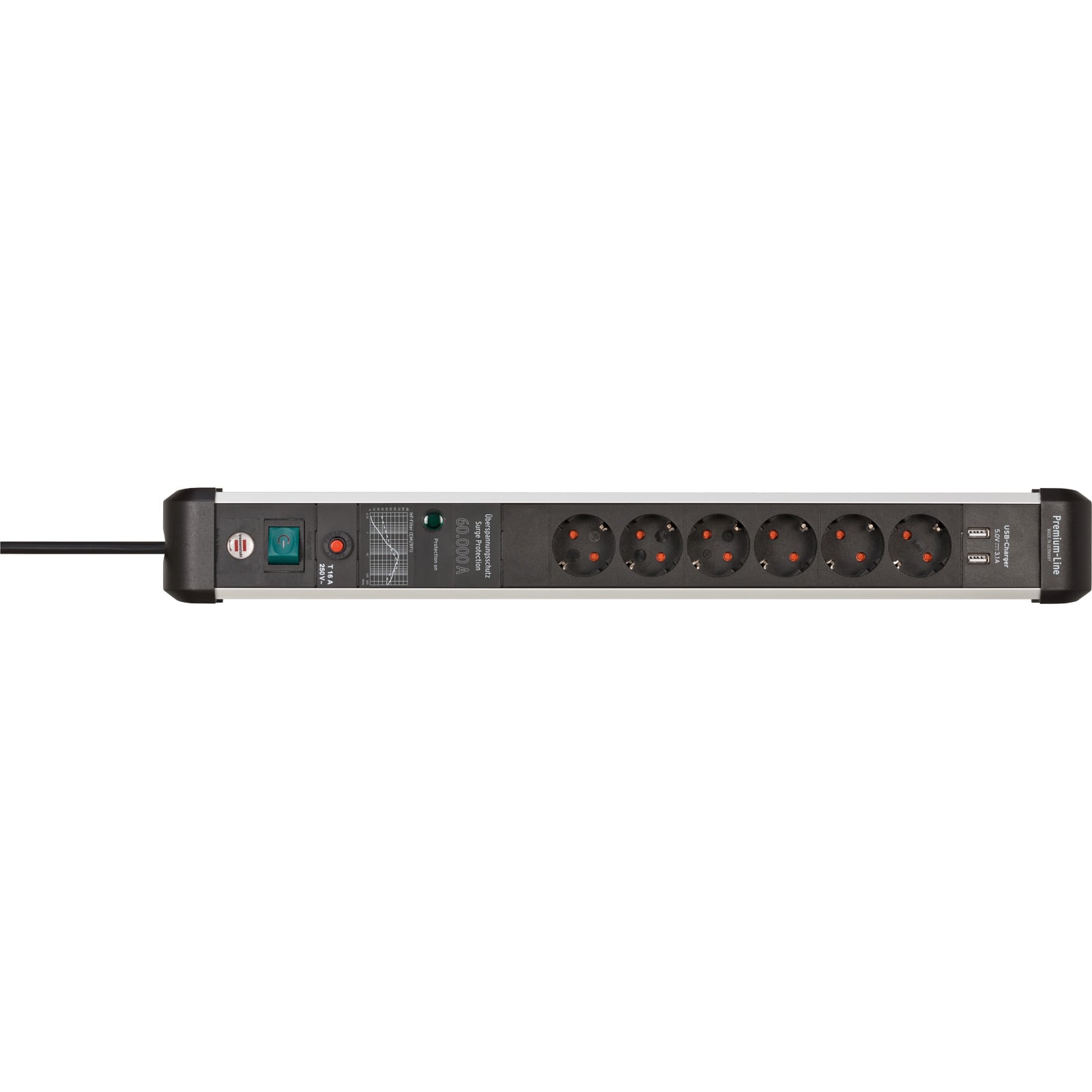 "Brennenstuhl Premium-Protect-Line 60.000A Überspannungsschutz-Steckdosenleiste mit USB-Ladefunktion 6-fach 3 m H05VV-F 3G1,5 - 1391010610"