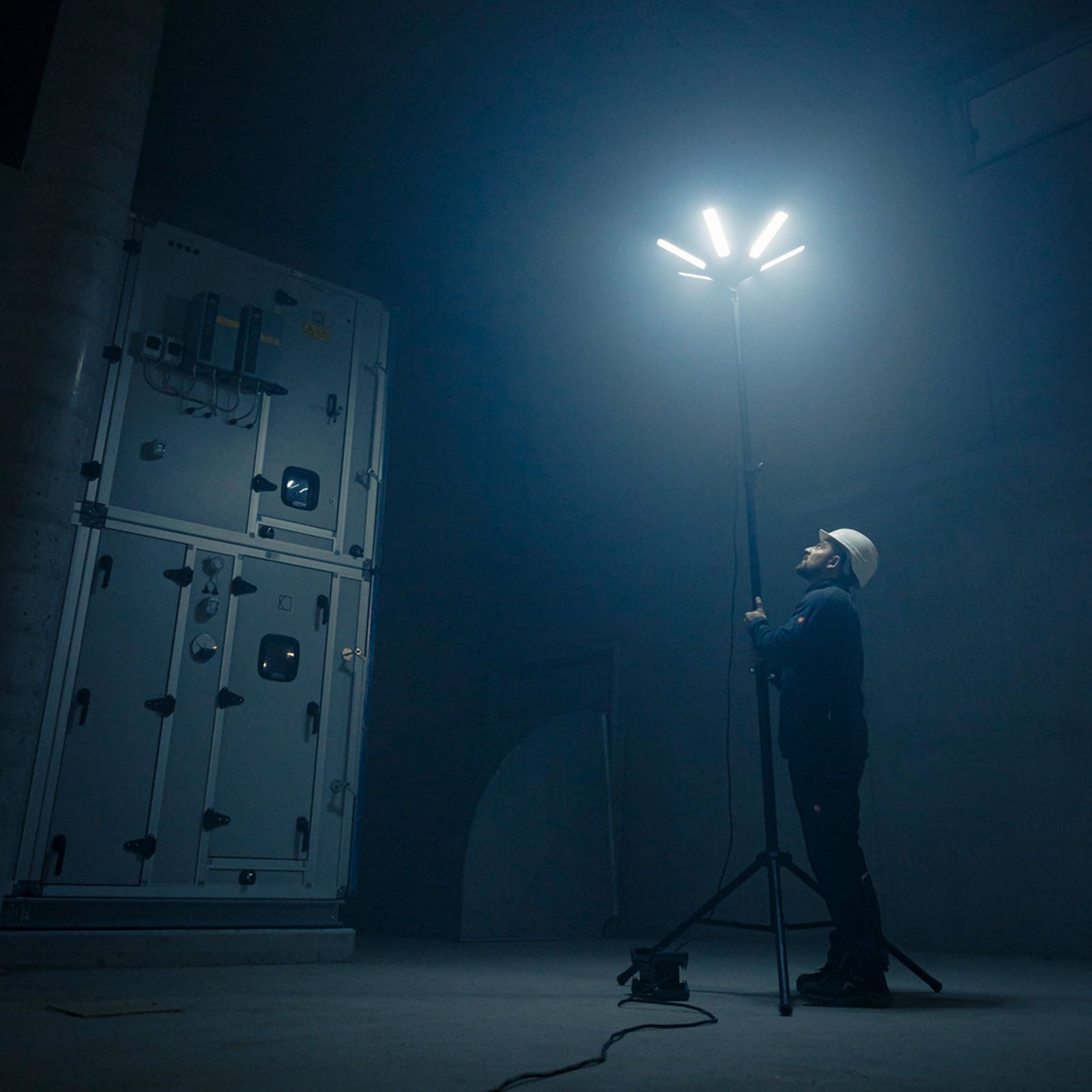 Der 360° LED Strahler R42050 BT von Brennenstuhl eignet sich optimal zur Ausleuchtung von Baustellen, geschlossenen Räumen oder Hallen. Jeder einzelne der sechs Strahler lässt sich individuell einstellen und erzielt so für jede Anforderung die optimale Lichtposition. Das Steuerelement IP65 verfügt über einen Ein/Aus Schalter und eine praktische Memory Funktion, welche die zuletzt verwendete Einstellung speichert. Der Baustrahler mit insgesamt vier Schaltstufen (100%- 75%- 50% - 25%) lässt sich dank Halterung problemlos auf ein Stativ anbringen oder über den Haken hängend befestigen und überzeugt zudem durch folgende Eigenschaften: