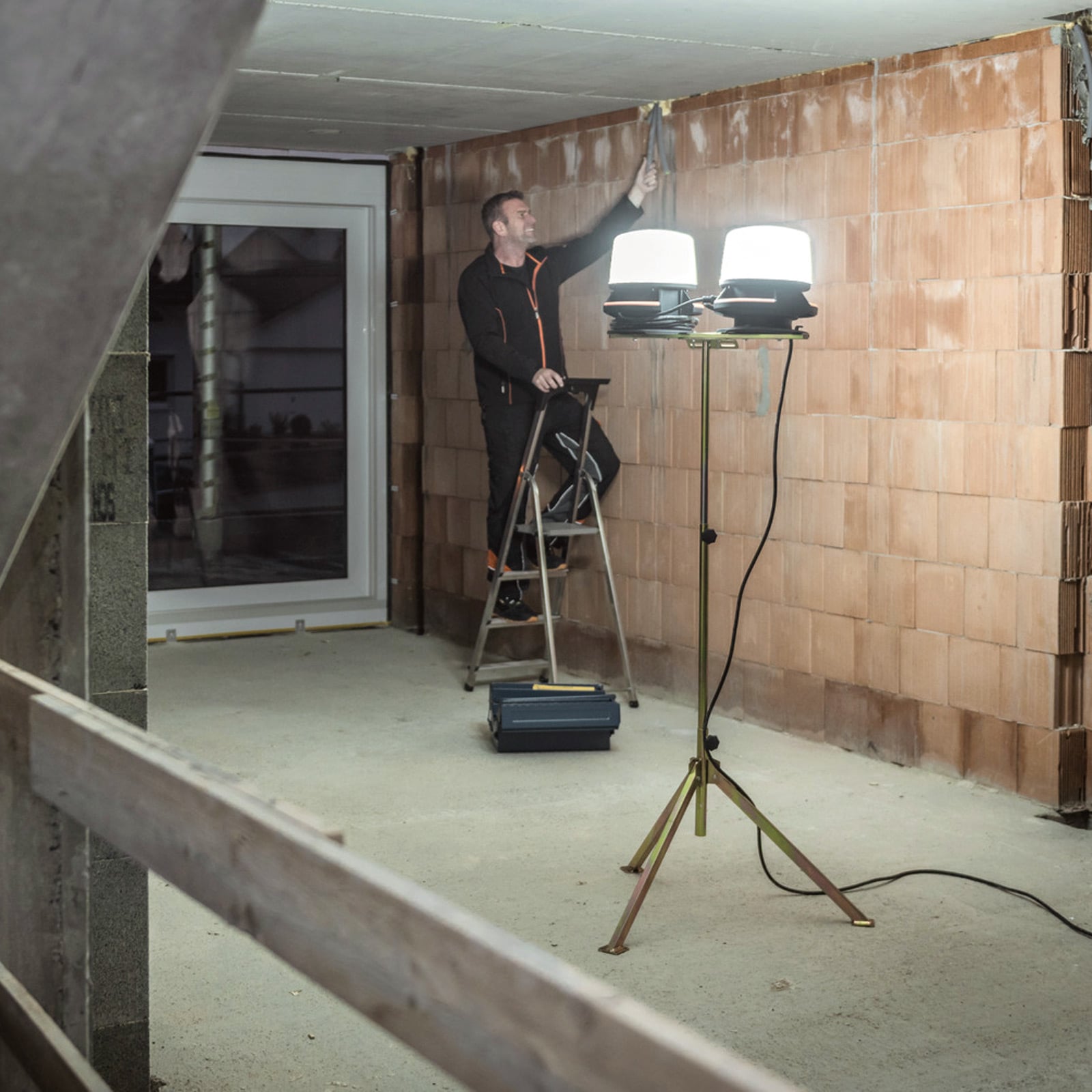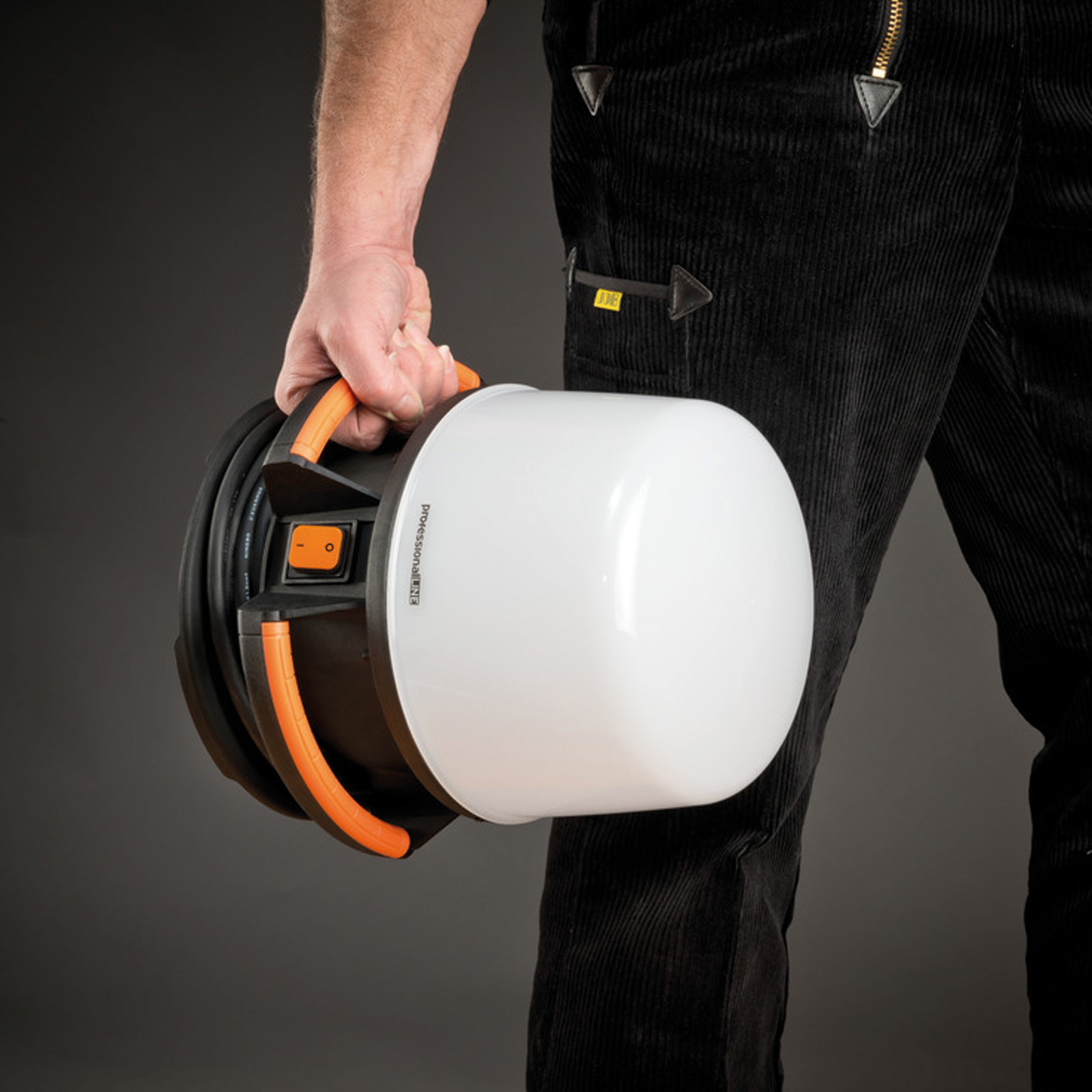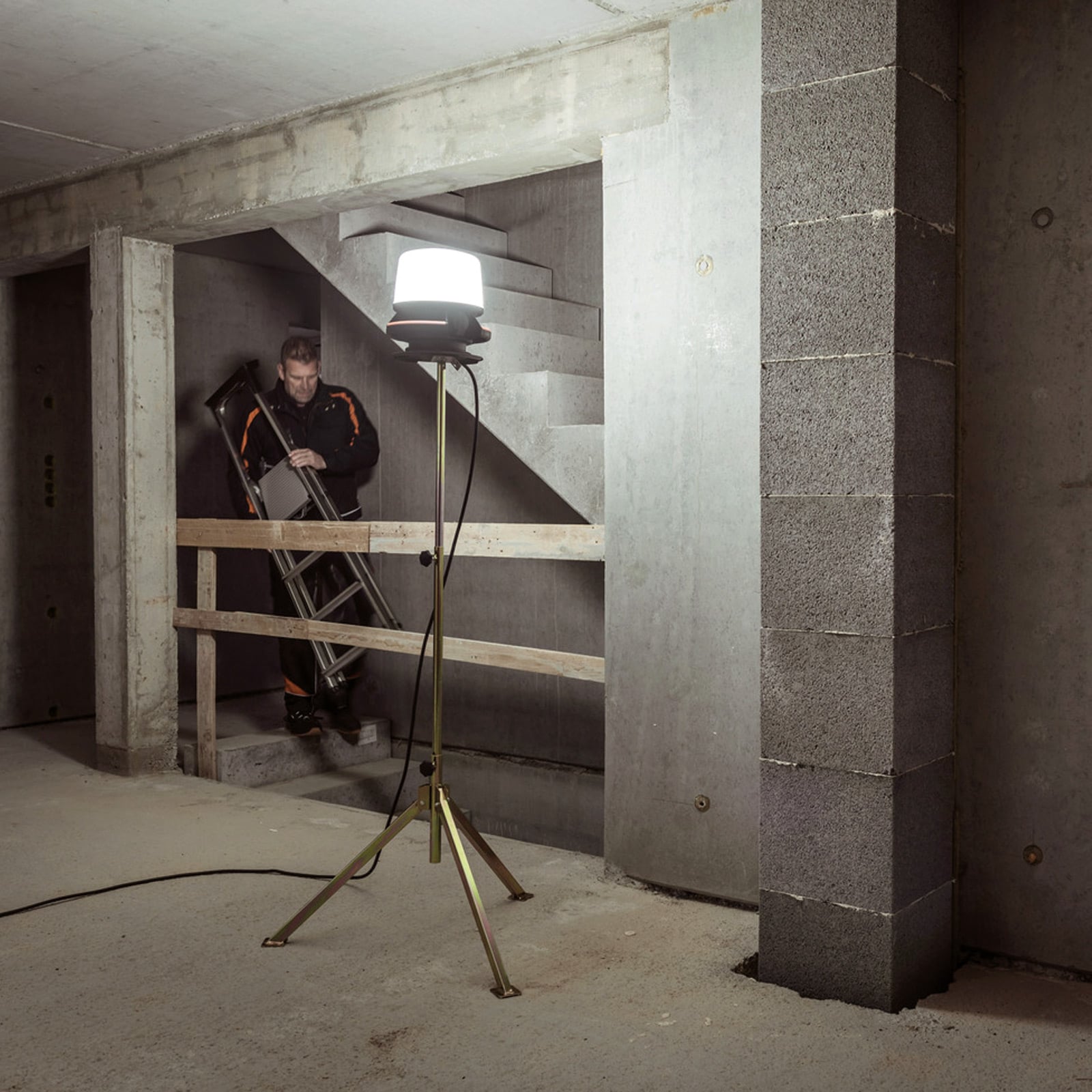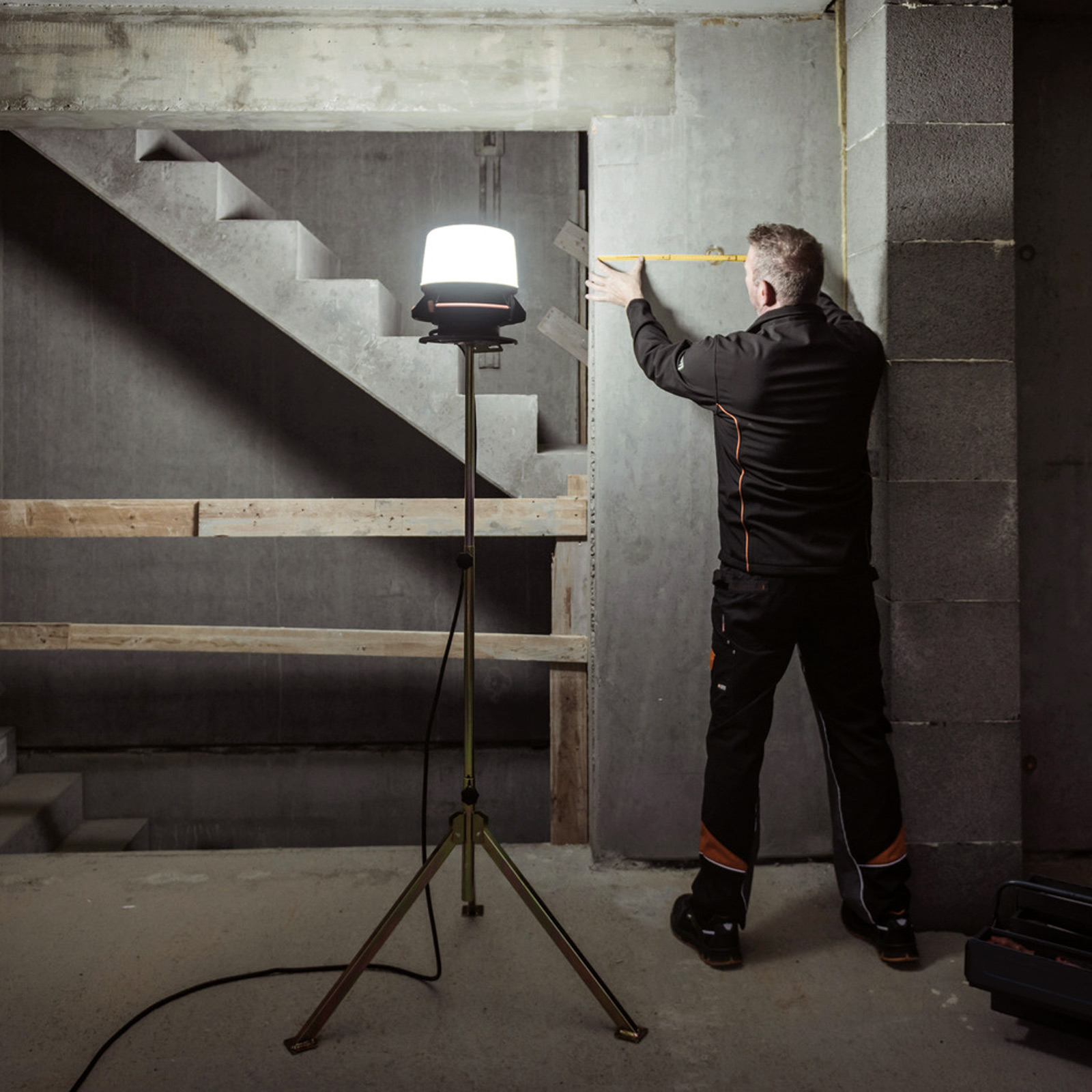 Der professionalLINE LED Baustrahler ORUM von Brennenstuhl ist ein tragbarer LED Strahler mit 47 W Leistung, der für eine perfekte Rundumbelechtung durch einen 360° Abstrahlwinkel sorgt. Die extrem robuste und industrietaugliche Arbeitsleuchte kann stehend, hängend oder auf einem Stativ montiert betrieben werden und überzeugt außerdem durch folgende Eigenschaften:
