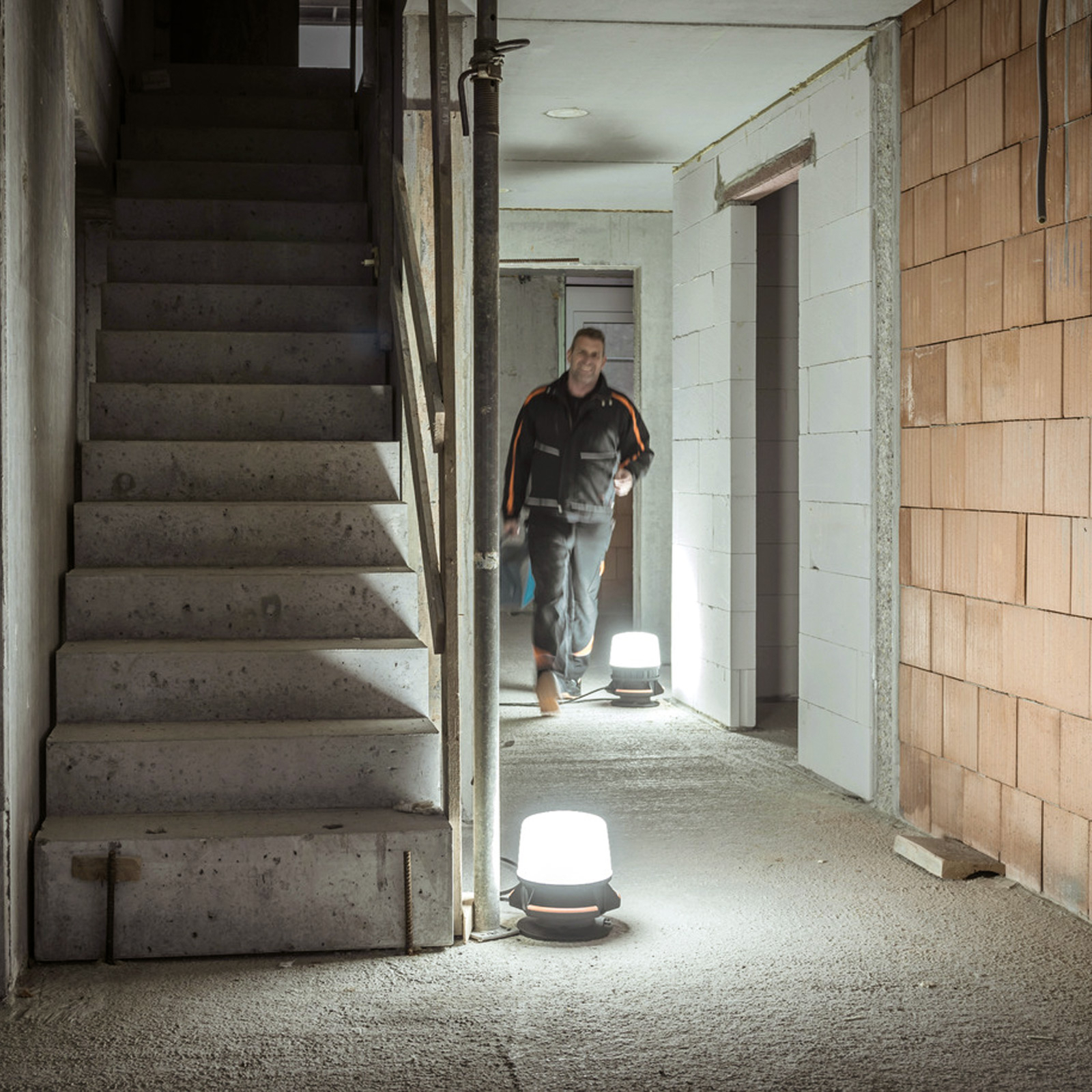 - LED Baustrahler zur Rundumbeleuchtung durch 360° Abstrahlwinkel kann stehend, hängend oder auf einem Stativ montiert betrieben werden - ideal für Malerarbeiten oder den Einsatz auf Baustellen