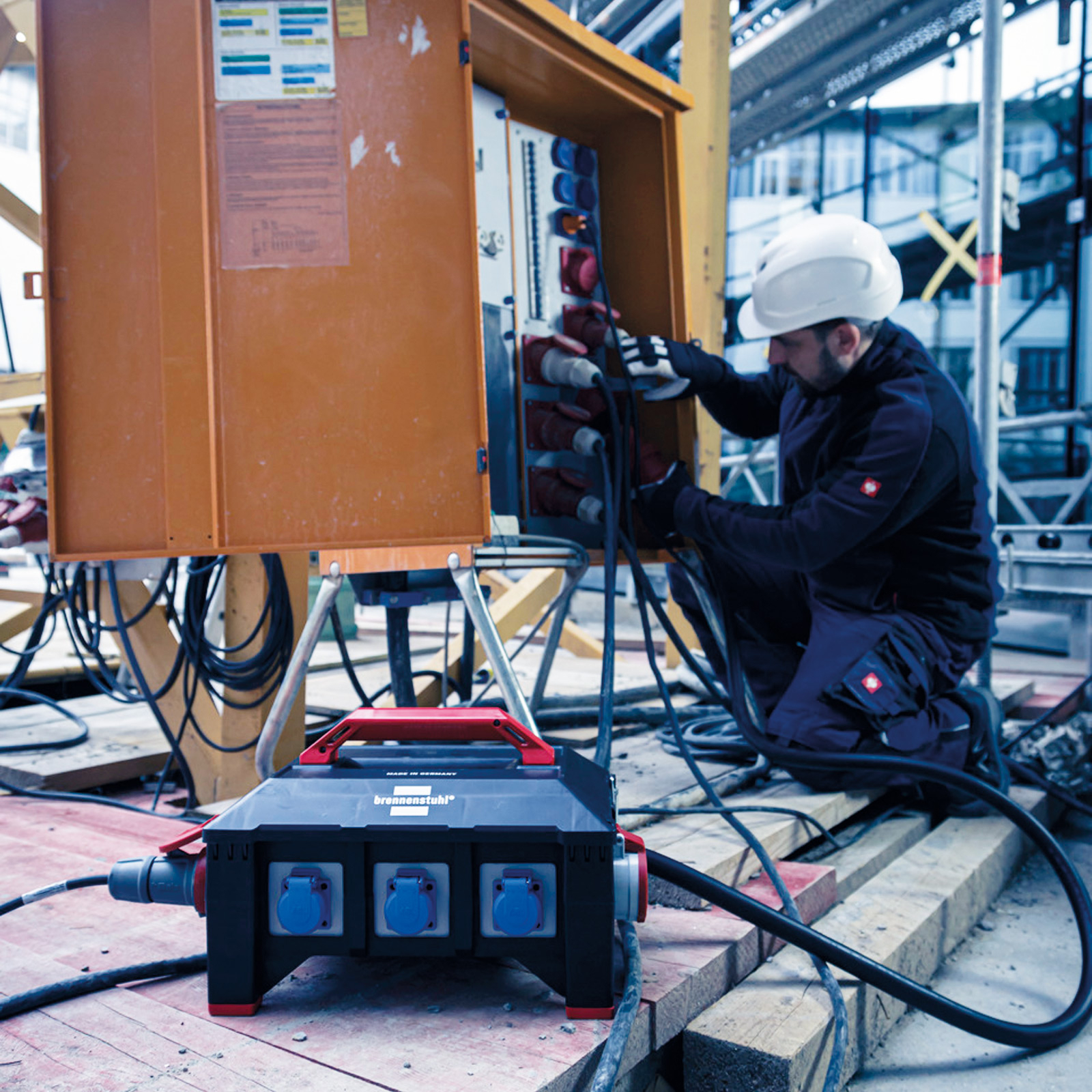 - Robuster, schlagfester, alterungs- und witterungsbeständiger Baustromverteiler mit Qualitätssteckdosen nach VDE 0620-2-1 und CEE-Steckdosen mit vernickelten Kontakten - gemacht für den harten Einsatz auf Baustellen