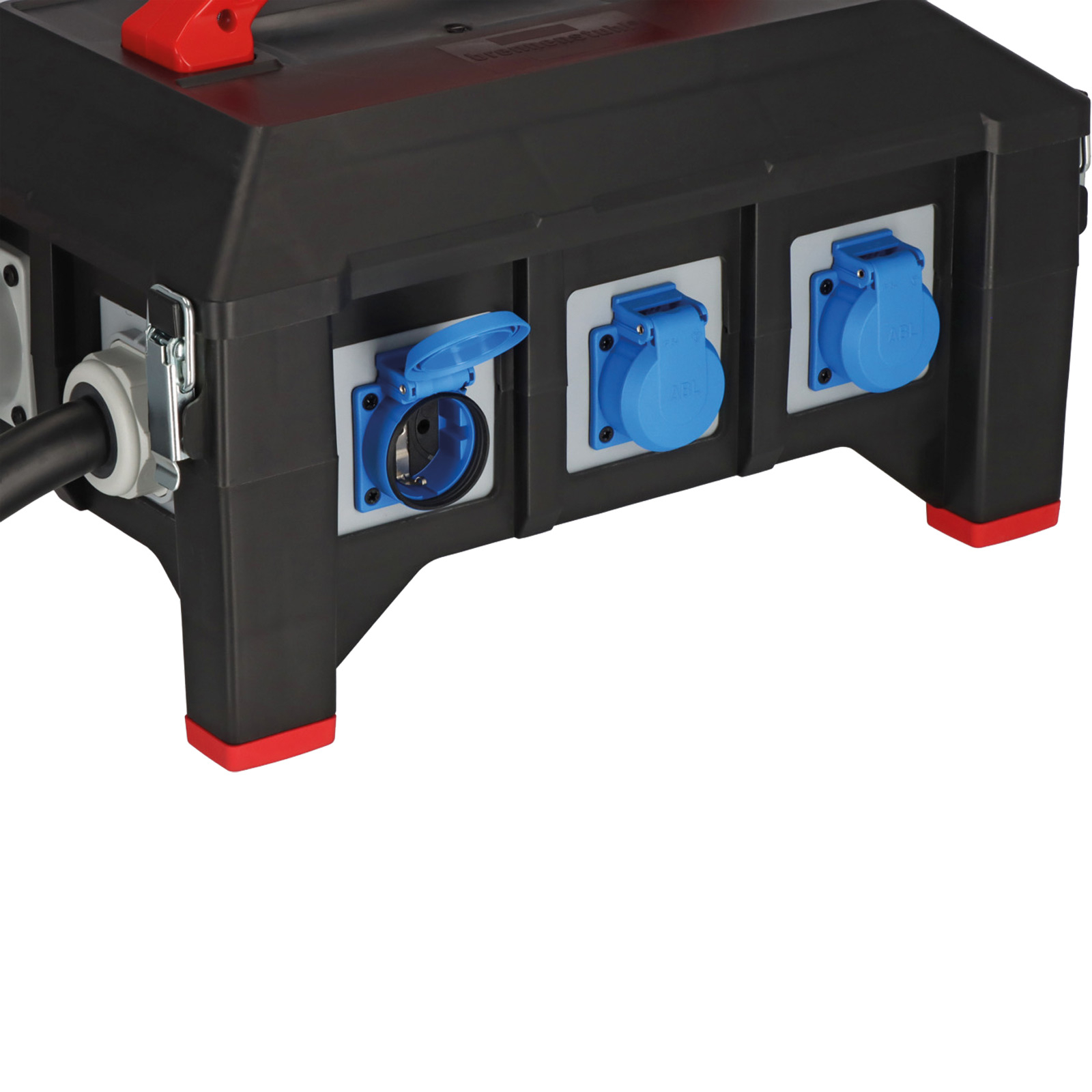 - Gummi-Stromverteiler mit praktischem Tragegriff für einen bequemen Transport und extrem hohen und rutschfesten Gummifüßen gegen bodenbedingte Verunreinigungen
