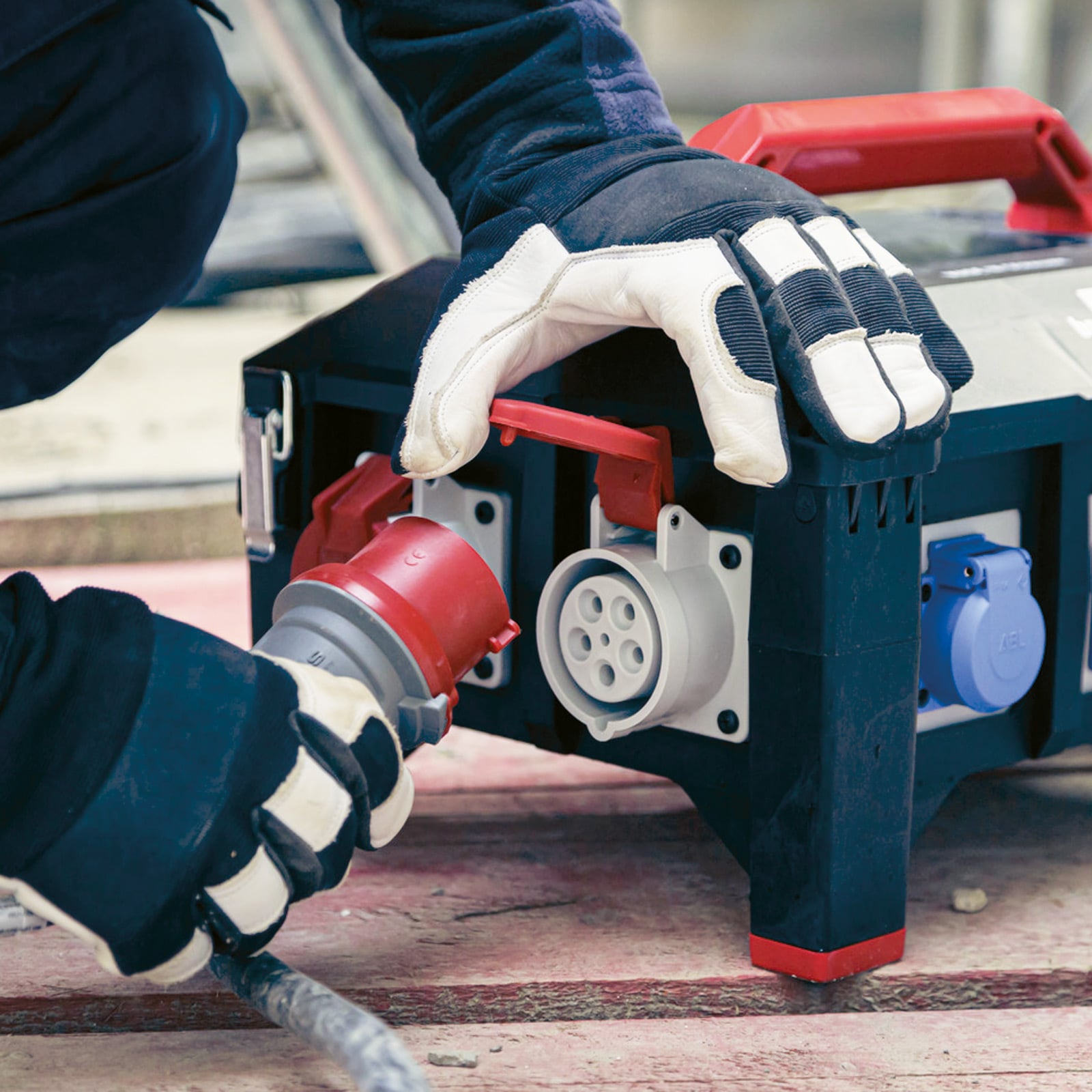 - Gummi-Stromverteiler IP44 mit selbstschließendem Deckel mit Schnellverschluss und robusten Scharnieren - inklusive Gurt zur Fixierung des Kabels