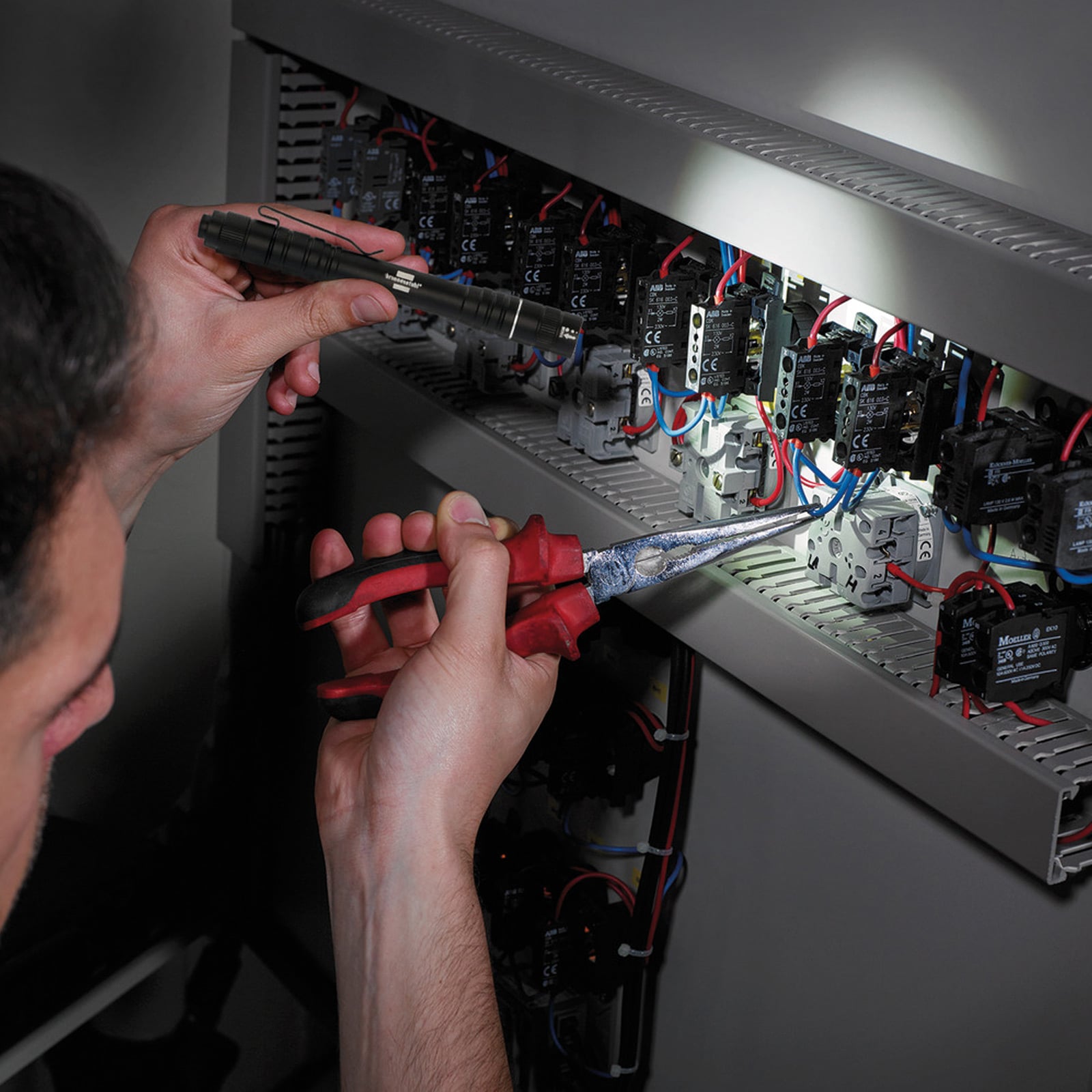 - Superschlanke Stift-Taschenlampe inkl. 2 Batterien kann dank der Schutzart IP44 problemlos im Außenbereich verwendet werden - ideal für Arbeiten in feuchter Umgebung