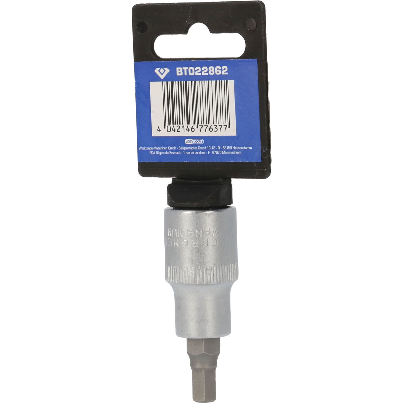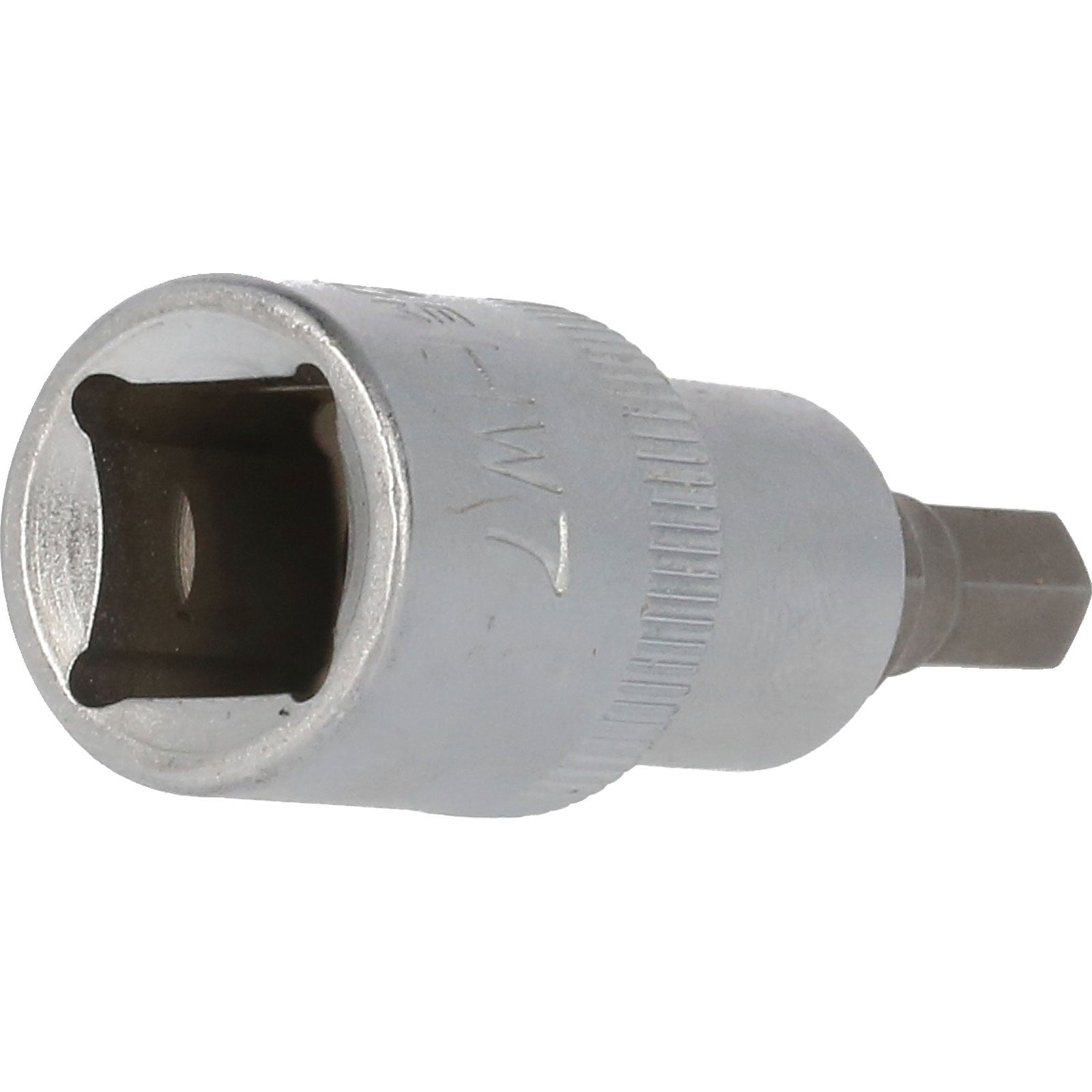 Die BRILLIANT TOOLS Innensechskant-Bit-Stecknuss BT022862 hat einen 1/2" (12,5 mm) Innenvierkant-Antrieb, der nach DIN 3120 gefertigt ist. Der eingepresste phosphatierte Bit hat die Größe 7. Die Bit-Stecknuss hat eine Gesamtlänge von 55 mm, die Klingenlänge beträgt 17 mm. Die Oberfläche ist an der Antriebsseite und an der Bitseite matt verchromt, diese ist durch eine Längsrändelung getrennt.