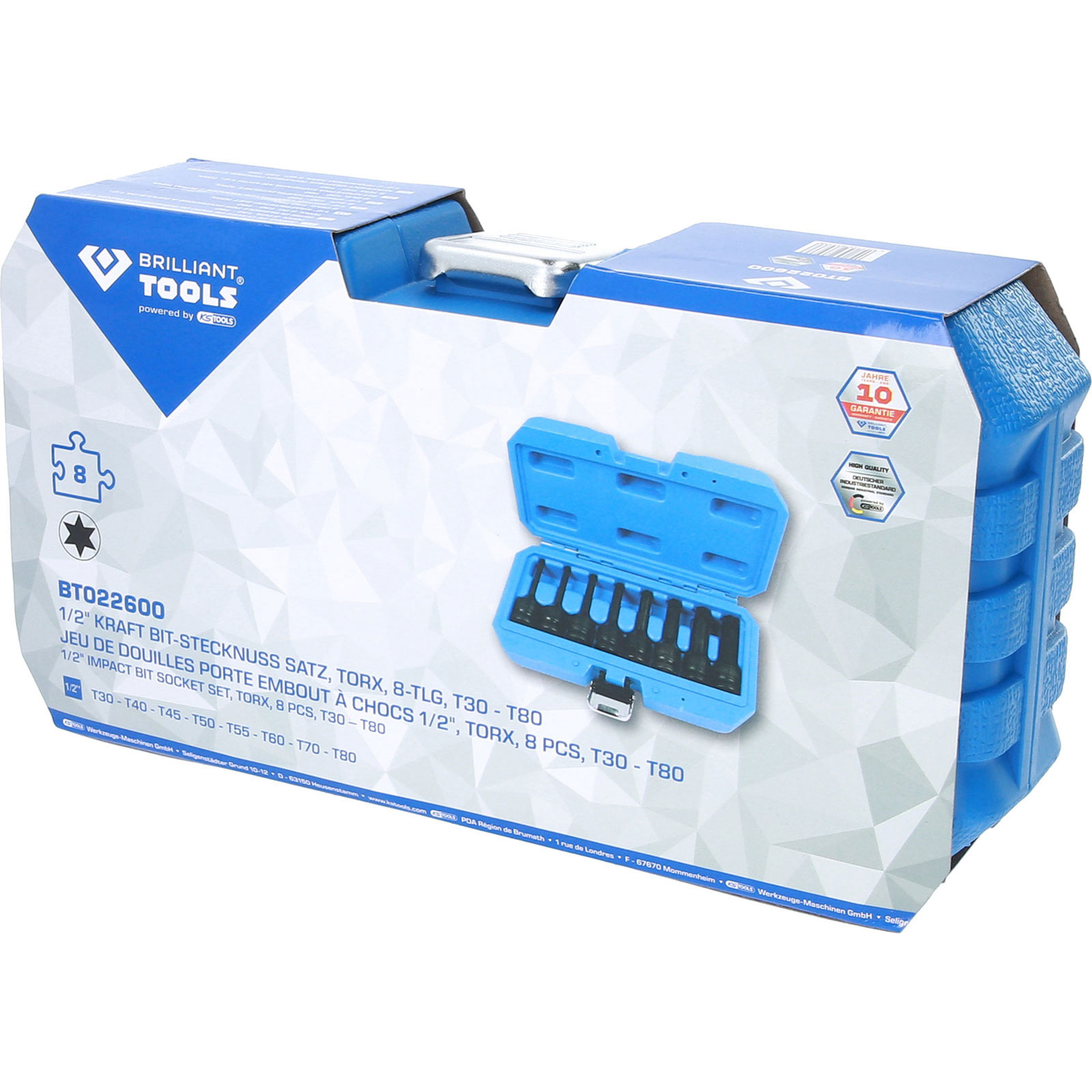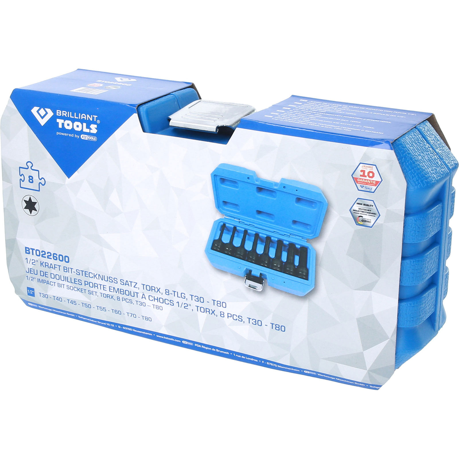 1x BRILLIANT TOOLS 1/2" Kraft Bit-Stecknuss Satz Torx 8tlg. T30 - T80