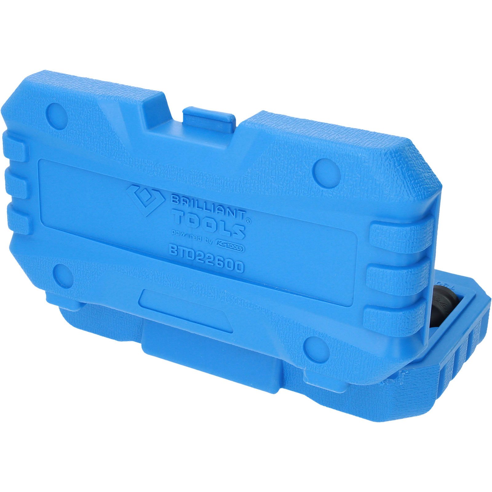 Der 8-teilige BRILLIANT TOOLS Torx Kraft Bit-Stecknuss-Satz BT022600 ist nach DIN 3121 gefertigt. Der gesamte Satz hat einen 1/2" (12,5 mm) Innenvierkant-Antrieb. Er wird in einem praktischen Koffer mit Metallscharnieren und Verschlüssen mit klemmgesicherten Werkzeugen geliefert. Die Beschriftung im Koffer ermöglicht ein rasches Finden der passenden Einsätze. Der Kraft Bit-Stecknuss-Satz ist in der Kfz-Werkstatt oder bei Baumaschinen einsetzbar. Er ist für den Betrieb mit einem Druckluft- oder Akku Schlagschrauber, Knarre oder Drehmomentschlüssel etc. geeignet. Die insgesamt 8 Torx Kraft Bit-Stecknüsse sind aus qualitativem Chrom-Molybdän-Stahl gefertigt und sind mit einer Aufnahme für einen Verbindungsstift und Gummiring ausgestattet. Im Satz enthalten sind die Größen von T30 bis T80 mit einer Gesamtlänge von 78 mm. Die Oberfläche ist phosphatiert und bietet so höchsten Korrosionsschutz.