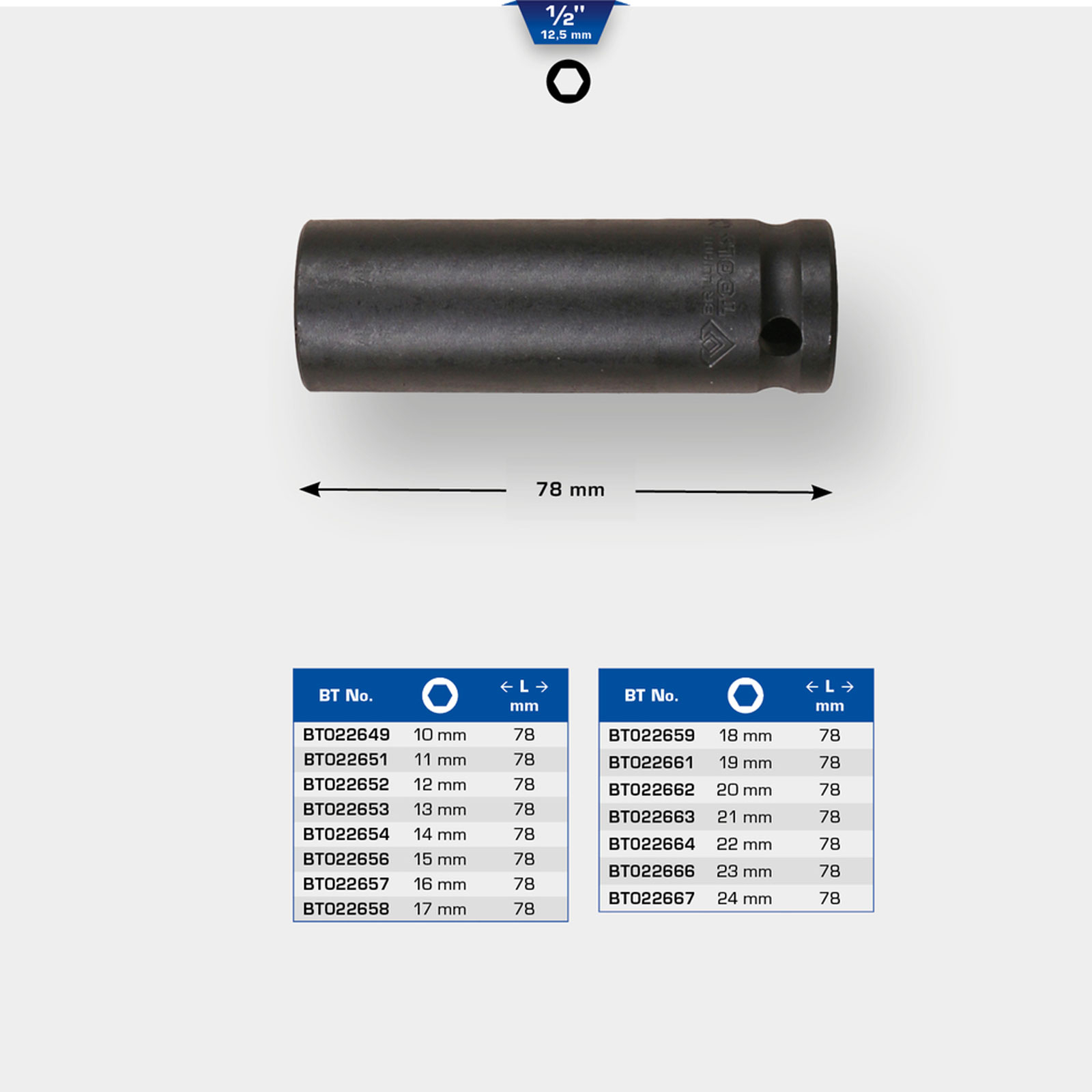 1x BRILLIANT TOOLS 1/2" Kraft-Stecknuss Sechskant 23 mm lang