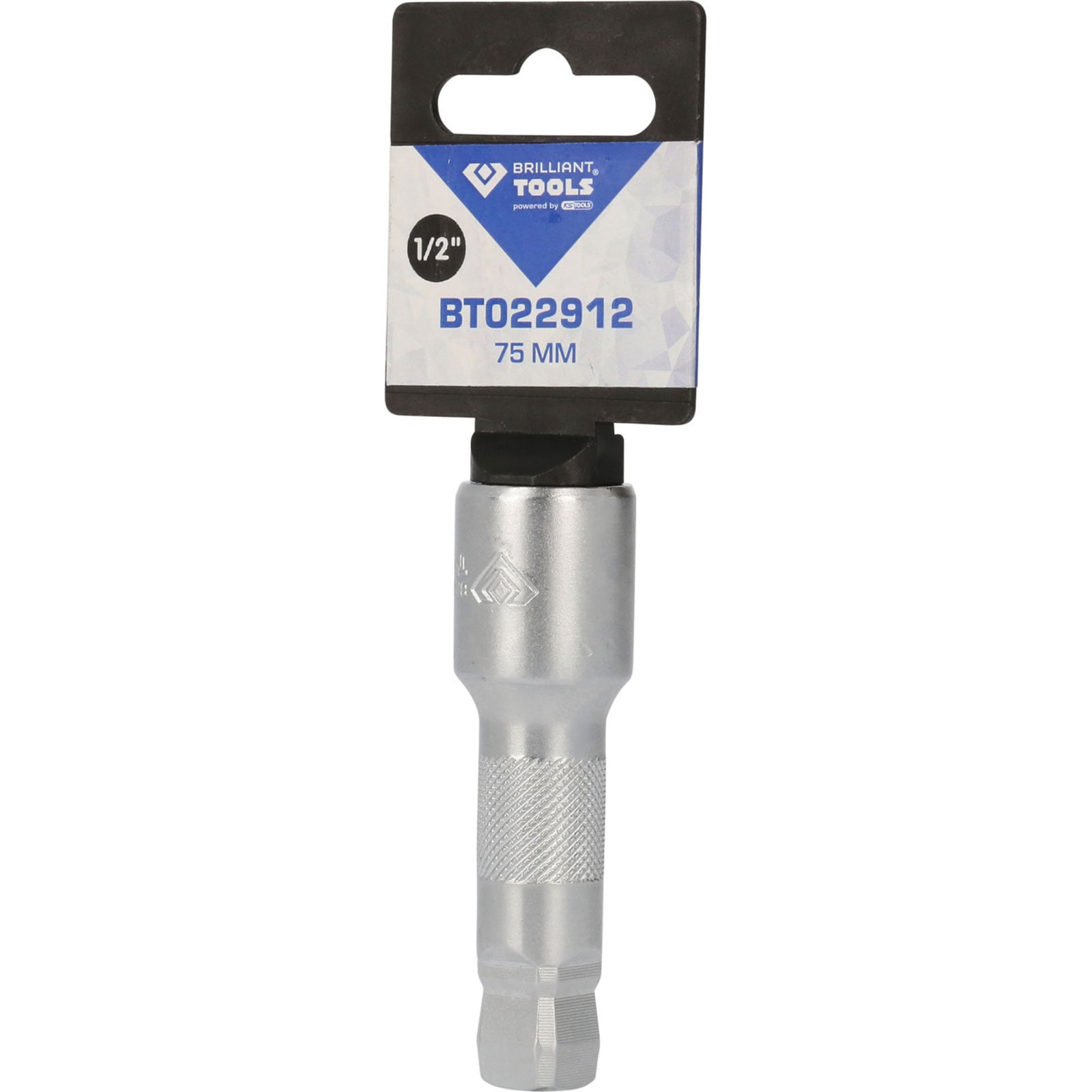 Die BRILLIANT TOOLS schwenkbare Verlängerung BT022912 wird nach DIN 3120 gefertigt. Die Verlängerung hat eine Länge von 75 mm, ist für den 1/2" (12,5 mm) Antrieb vorgesehen. Die Oberfläche ist matt verchromt. Sie ist nur für handbetriebene Stecknüsse geeignet.