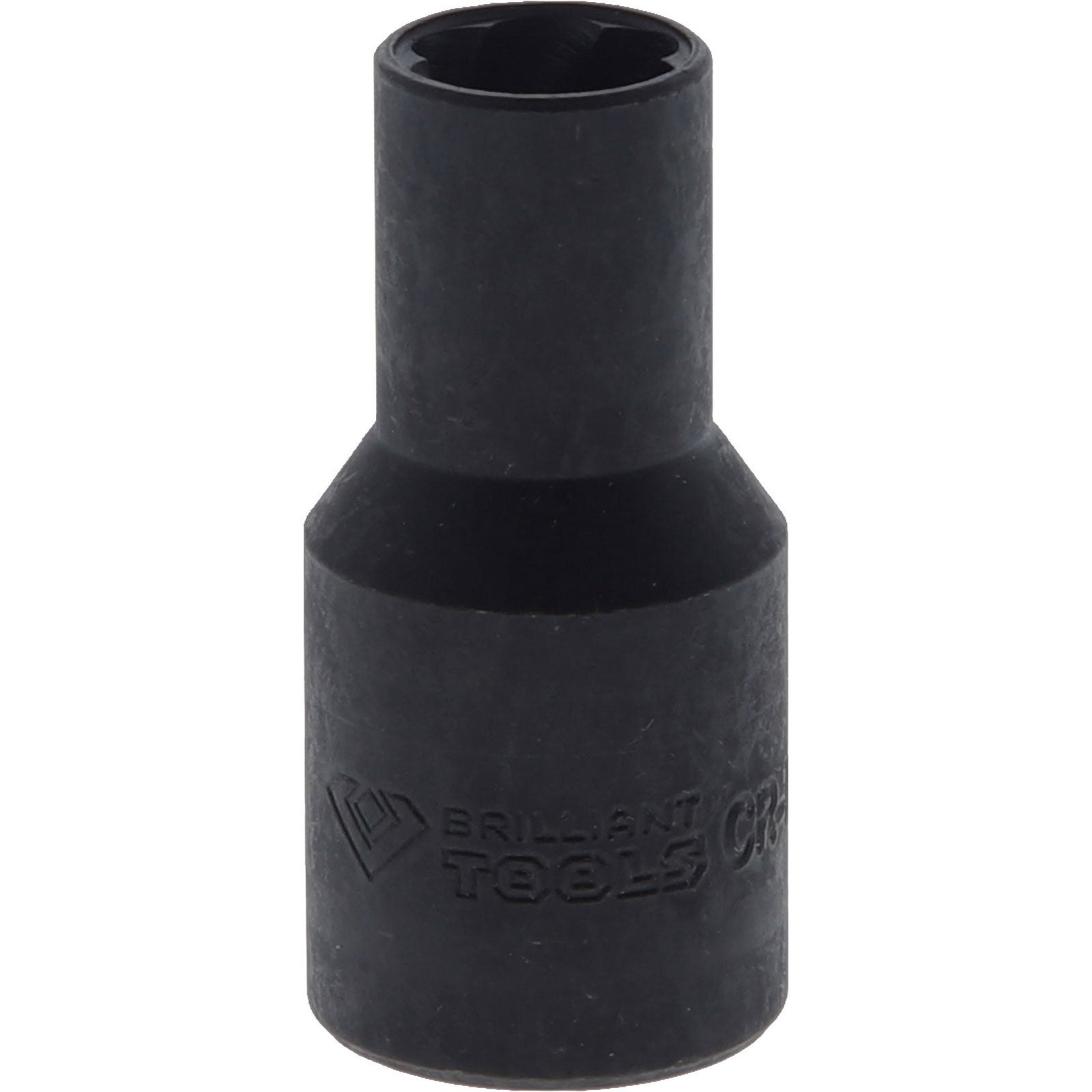 Die BRILLIANT TOOLS 1/2" Spiral-Profil-Stecknuss BT026002 ist ein unverzichtbarer Helfer bei beschädigten Muttern- oder Schraubenköpfen. Das Spiralprofil frisst sich in den Schraubenkopf und ermöglicht so das Lösen des sonst nicht mehr zu betätigenden Sechskants. Die Stecknuss hat die Schlüsselweite 11 mm und eine Gesamtlänge von 34 mm. Der 1/2" (12,5 mm) Innenvierkant-Antrieb ist nach DIN 3120 gefertigt.Die Oberfläche ist phosphatiert und bietet so höchsten Korrosionsschutz.