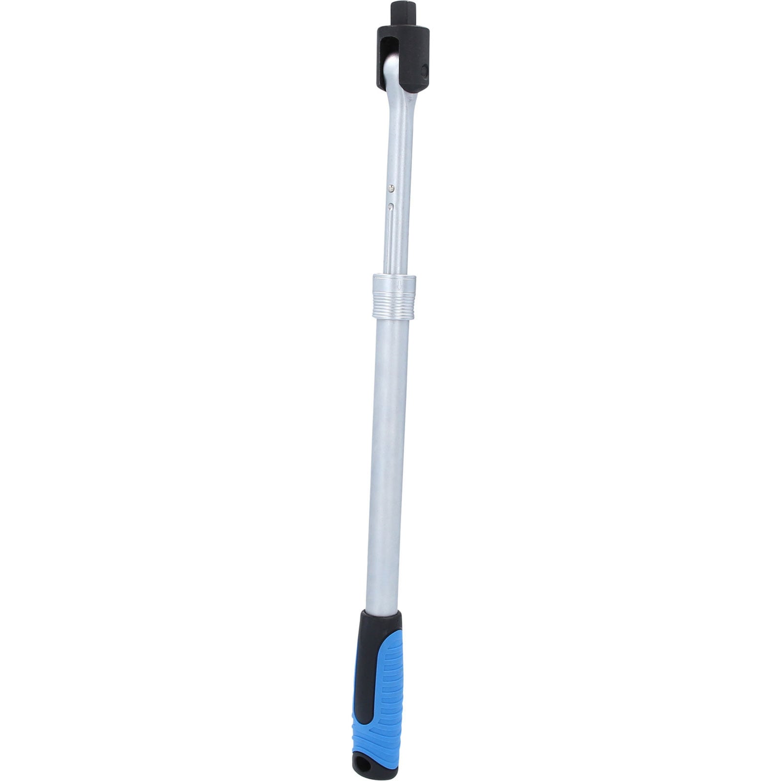 Der BRILLIANT TOOLS Teleskop-Gelenkgriff BT022401 hat einen 1/2" (12,5 mm) Vierkant-Antrieb, der nach DIN 3120 / ISO 1174 gefertigt ist. Er ist für den Einsatz von Stecknüssen und Verbindungsteilen mitVierkantantrieb nach DIN 3120 / ISO 1174 und Kugelfangrille bestimmt. Der Teleskop-Schaft lässt sich durch Betätigung der Ringsicherung in 5 Positionen arretieren, sodass sich die Länge des Gelenkgriffs im Bereich von 45 - 61 cm variabel einstellen lässt. Somit ist er ideal für schwer zugängliche Bereiche und schützt damit die Knarre oder den Drehmomentschlüssel vor Überlastung. Der 2-Komponentengriff ist mit einem Aufhängeloch versehen. Die Oberfläche ist matt verchromt.