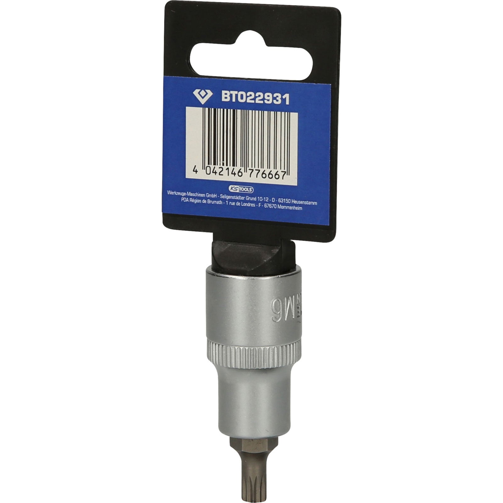 Die BRILLIANT TOOLS Vielzahn-Bit-Stecknuss BT022931 hat einen 1/2" (12,5 mm) Innenvierkant-Antrieb, der nach DIN 3120 gefertigt ist. Der eingepresste phosphatierte Bit hat die Größe M6. Die Bit-Stecknuss hat eine Gesamtlänge von 55 mm, die Klingenlänge beträgt 17 mm. Die Oberfläche ist an der Antriebsseite und an der Bitseite matt verchromt, diese ist durch eine Längsrändelung getrennt.