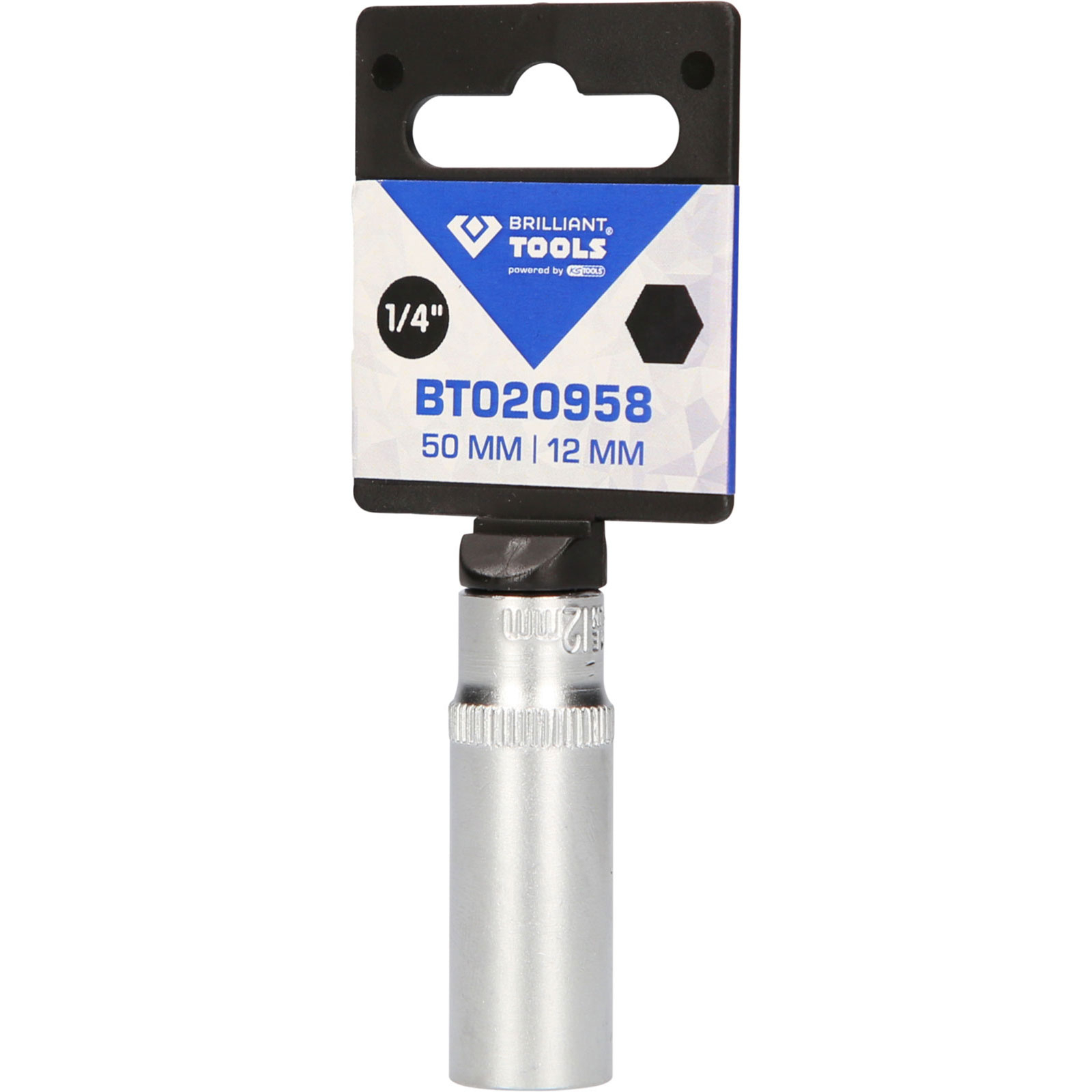 1x BRILLIANT TOOLS 1/4" Sechskant-Stecknuss lange Ausführung 12 mm