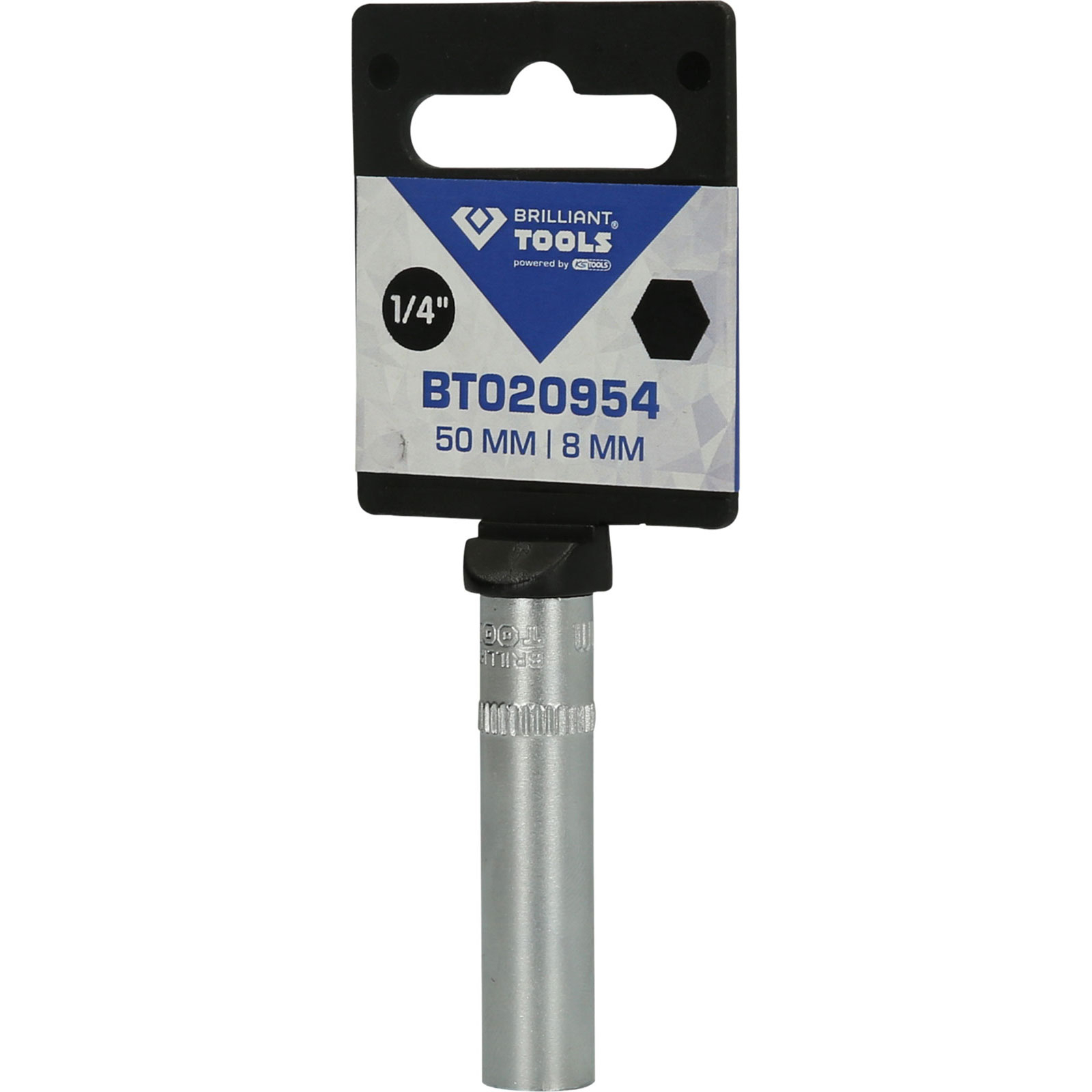 1x BRILLIANT TOOLS 1/4" Sechskant-Stecknuss lange Ausführung 8 mm