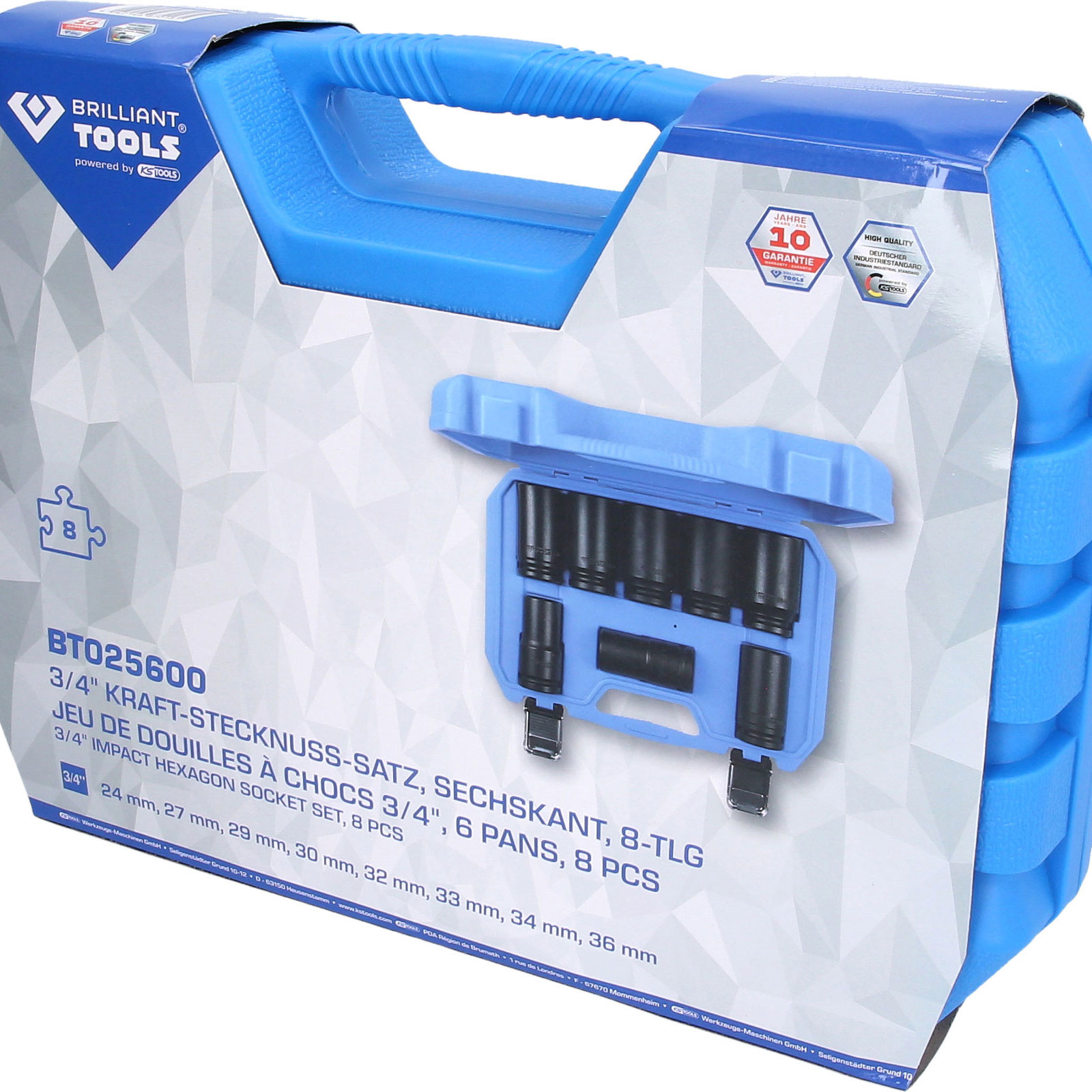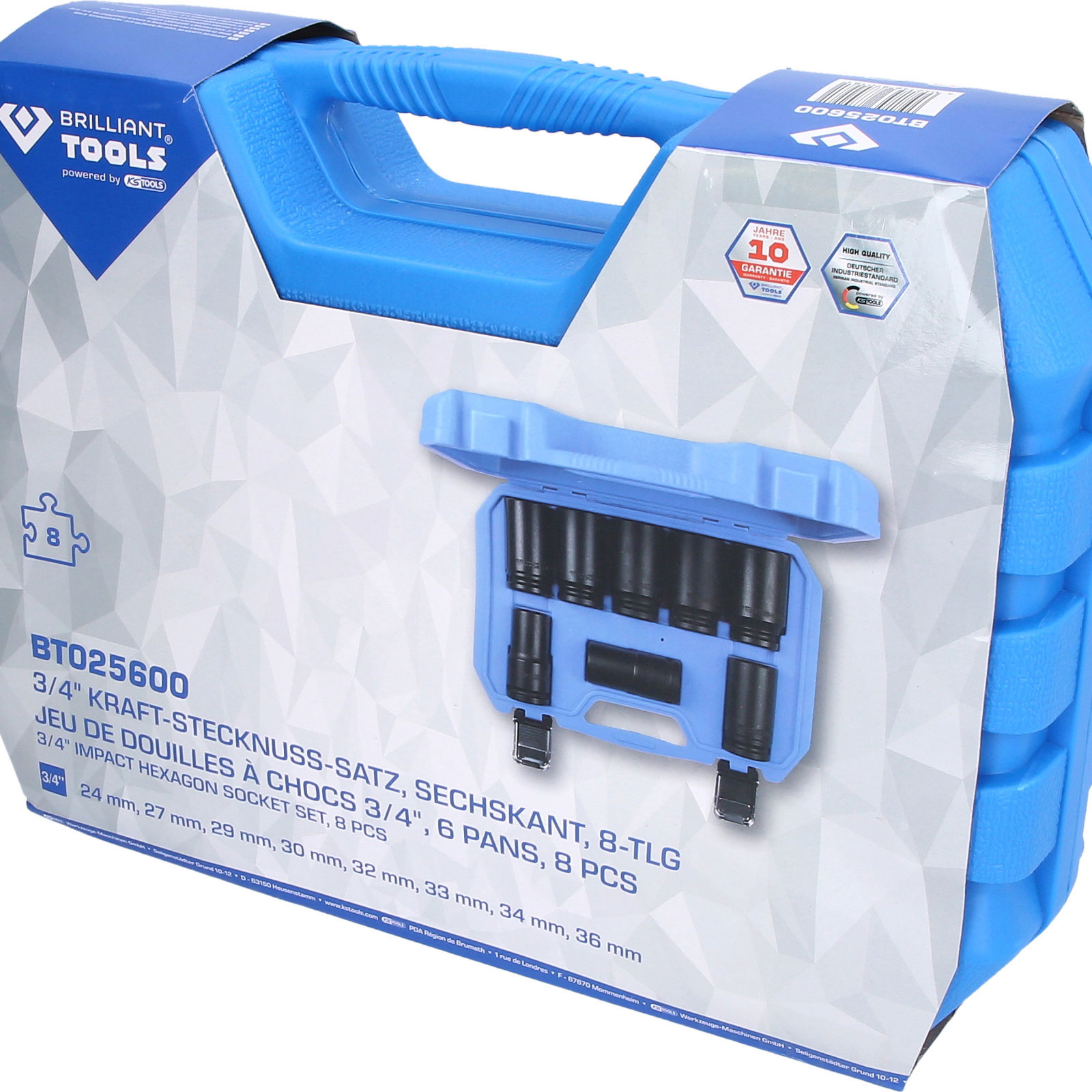 1x BRILLIANT TOOLS 3/4" Kraft-Stecknuss-Satz Sechskant 8tlg. lang 24 - 36 mm
