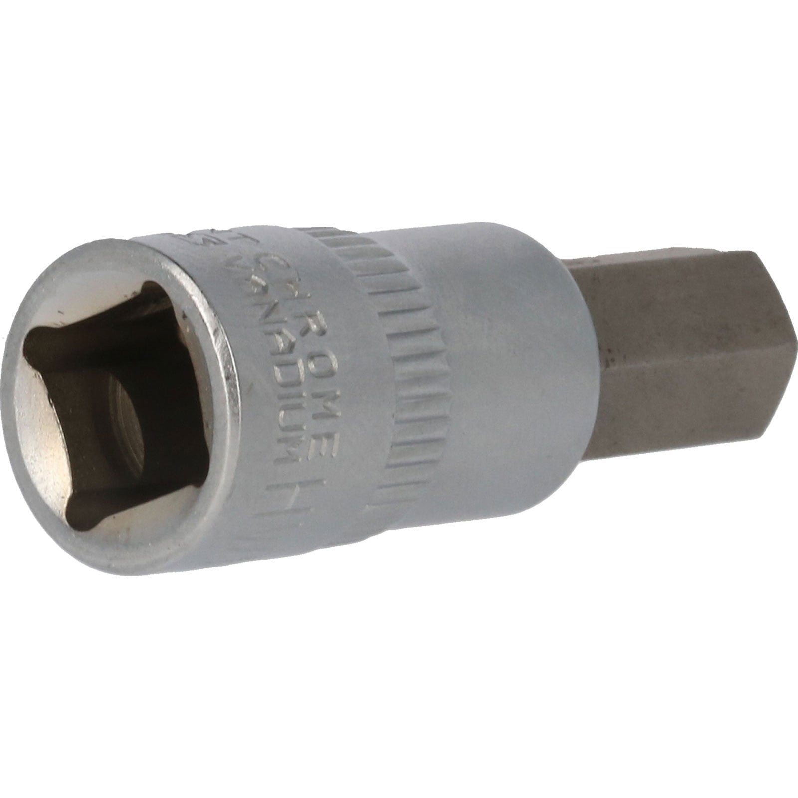 Die BRILLIANT TOOLS Innensechskant-Bit-Stecknuss BT021876 hat einen 3/8" (10 mm) Innenvierkant-Antrieb, der nach DIN 3120 gefertigt ist. Der eingepresste phosphatierte Bit hat die Größe 10. Die Bit-Stecknuss hat eine Gesamtlänge von 49 mm, die Klingenlänge beträgt 17 mm. Die Oberfläche ist an der Antriebsseite und an der Bitseite matt verchromt, diese ist durch eine Längsrändelung getrennt.