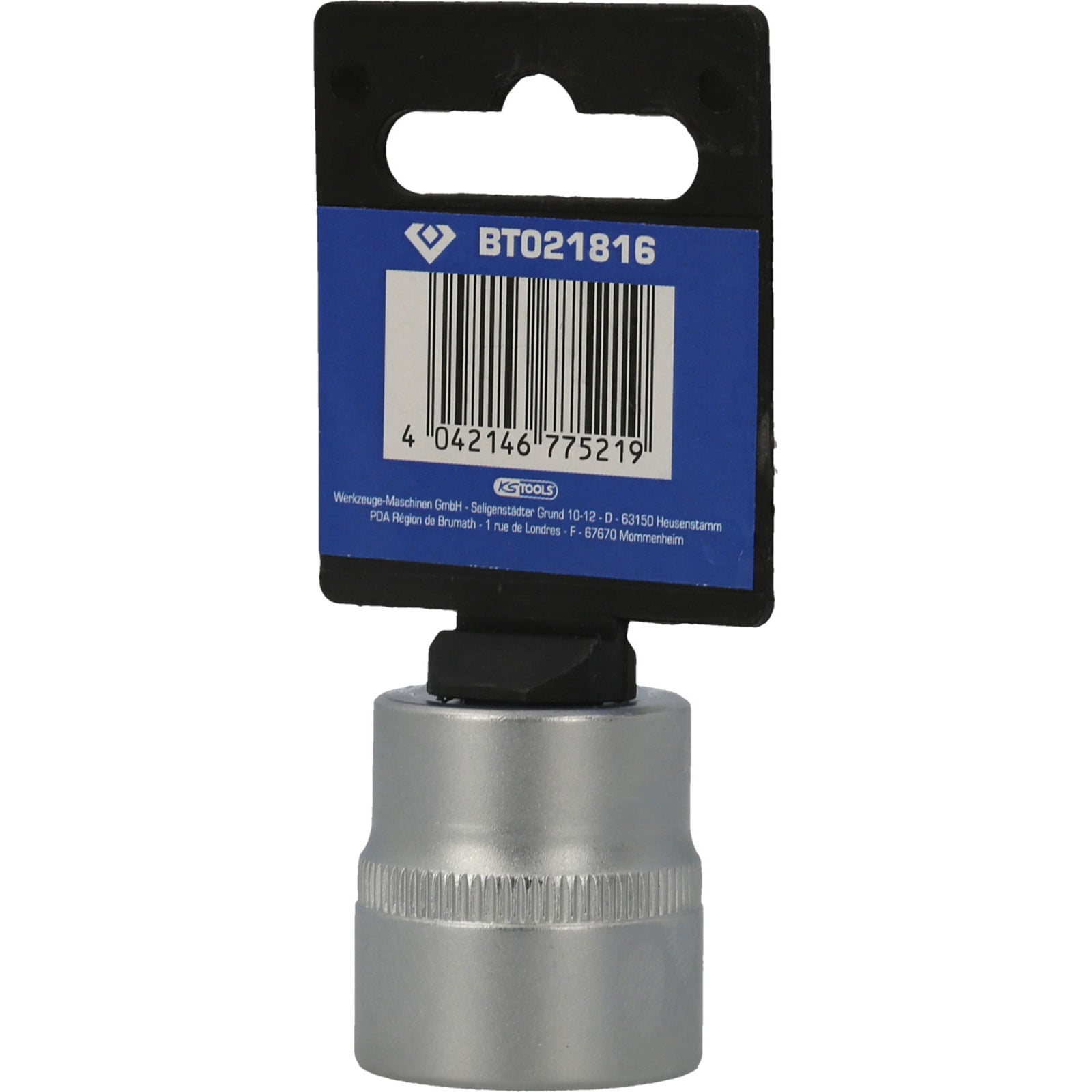 Die BRILLIANT TOOLS Sechskant-Stecknuss BT021816 ist nach DIN 3124 gefertigt. Der kurze metrische Einsatz hat einen 3/8" (10 mm) Innenvierkant-Antrieb welcher nach DIN 3120 gefertigt wurde. Die Schlüsselweite des Sechskants ist 22 mm. Die Stecknuss hat eine Gesamtlänge von 28 mm. Die Oberfläche ist an der Antriebsseite und an der Innensechskantseite matt verchromt, diese ist durch eine Längsrändelung getrennt.