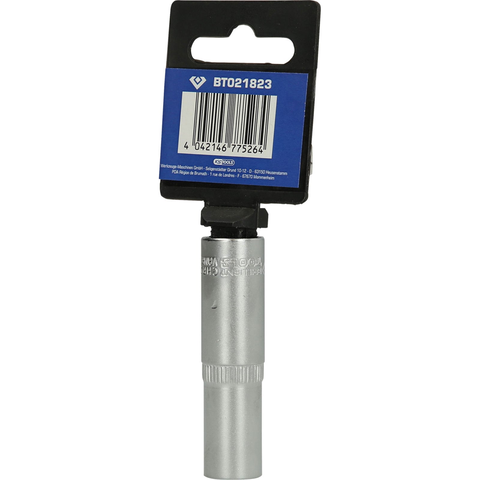 Die BRILLIANT TOOLS Sechskant-Stecknuss BT021823 ist nach DIN 3124 gefertigt. Der lange metrische Einsatz hat einen 3/8" (10 mm) Innenvierkant-Antrieb welcher nach DIN 3120 gefertigt wurde. Die Schlüsselweite des Sechskants ist 11 mm. Die Stecknuss hat eine Gesamtlänge von 63 mm. Die Oberfläche ist an der Antriebsseite und an der Innensechskantseite matt verchromt, diese ist durch eine Längsrändelung getrennt.