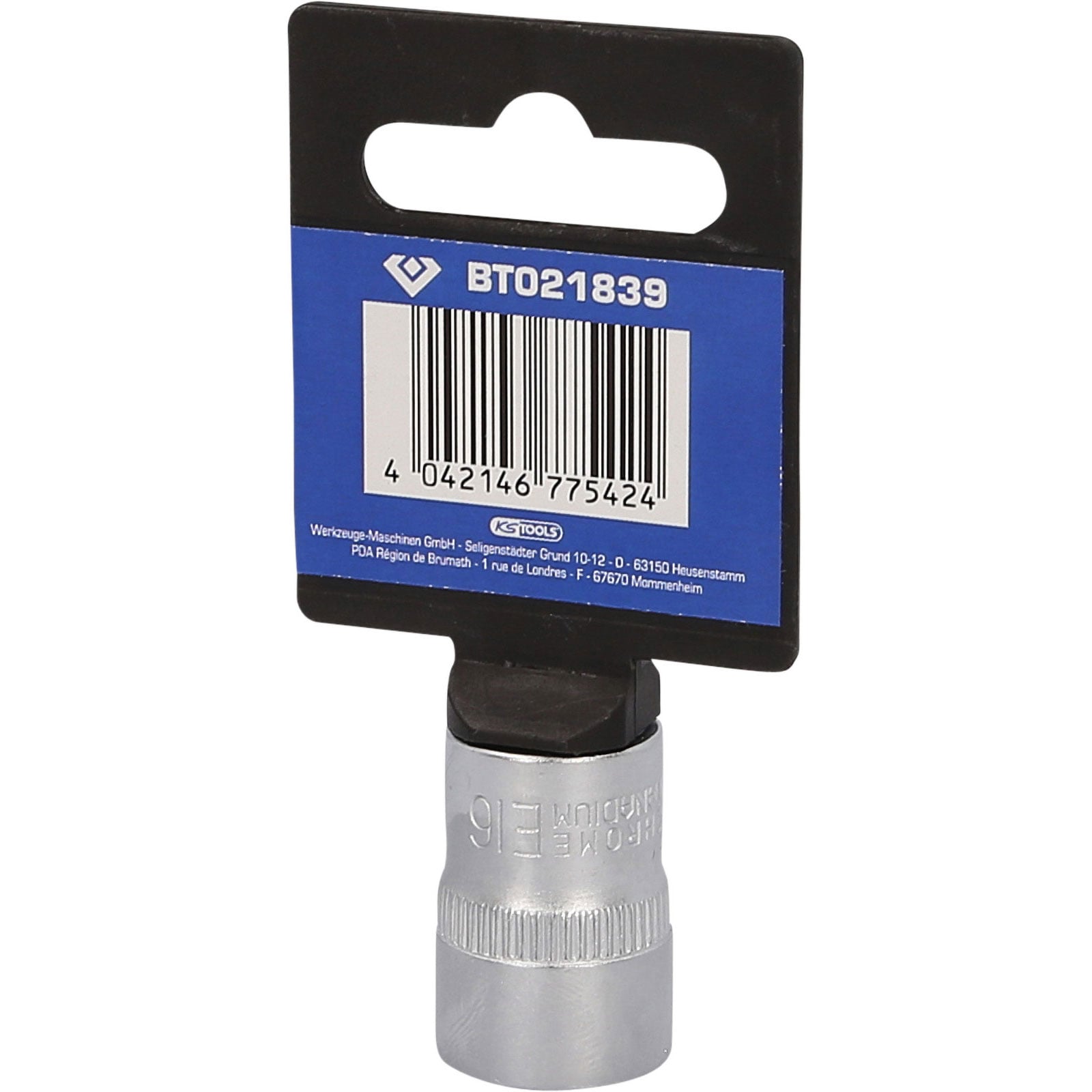 Die BRILLIANT TOOLS Torx-E-Stecknuss BT021839 ist zum einfachen Festziehen und Lösen von Schrauben mit Torx-E Antrieb geeignet. Der kurze metrische Einsatz hat einen 3/8" (10 mm) Innenvierkant-Antrieb welcher nach DIN 3120 gefertigt wurde. Die Schlüsselweite ist E16. Die Stecknuss hat eine Gesamtlänge von 28 mm. Die Oberfläche ist an der Antriebsseite und an der Innensechskantseite matt verchromt, diese ist durch eine Längsrändelung getrennt.