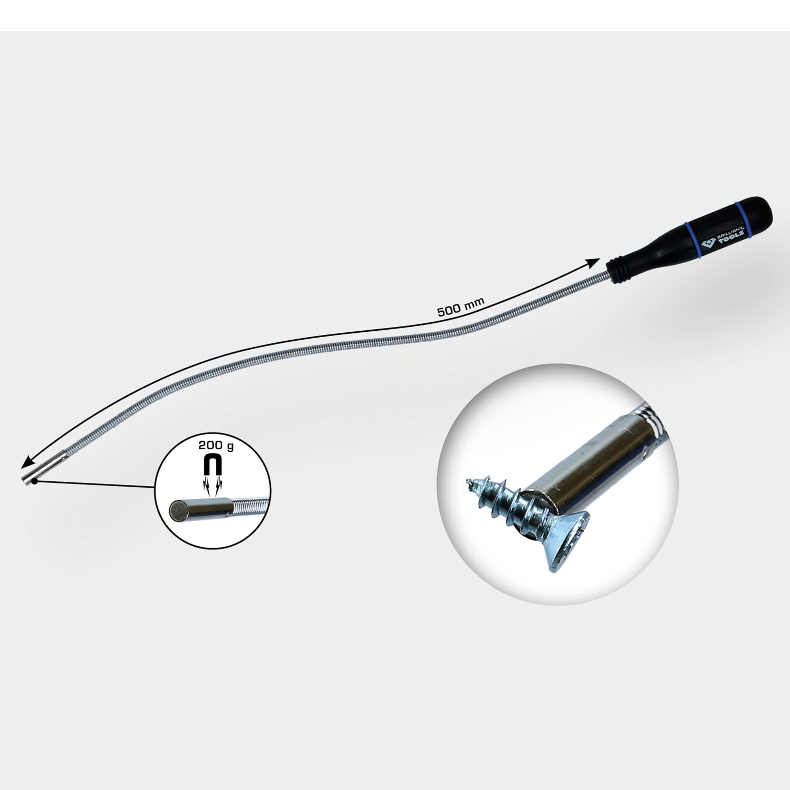 Der BRILLIANT TOOLS Magnetheber BT115906 ist für eine Vielzahl von Anwendungsfällen bestens geeignet. Mit dem 50 cm langen flexiblen Heber werden auch versperrte oder sehr enge Stellen erreichbar. Der Magnet hat eine Tragkraft von 200 g.