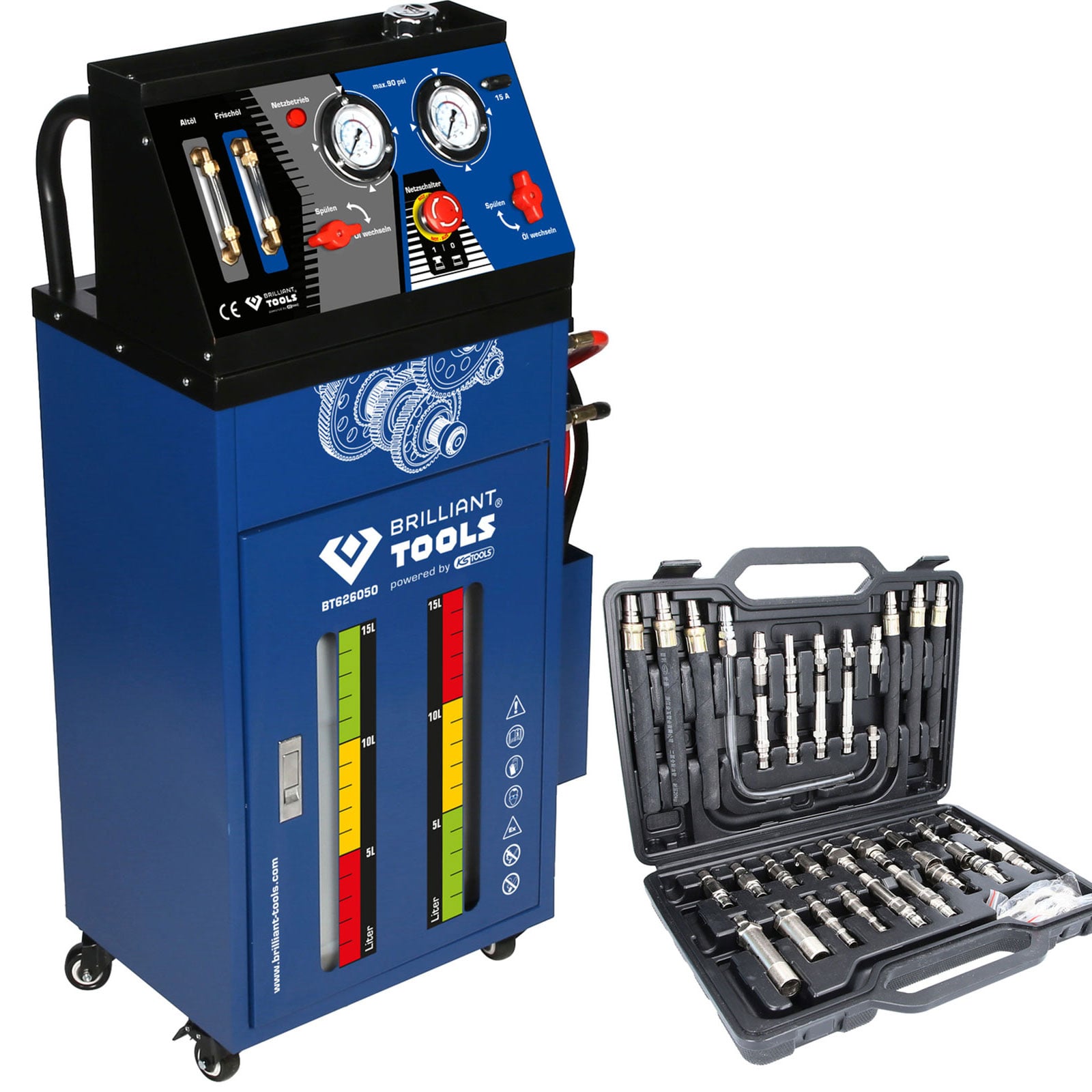 1x BRILLIANT TOOLS Getriebespülgerät für Automatikgetriebe inklusive 35tlg. Adapter-Satz