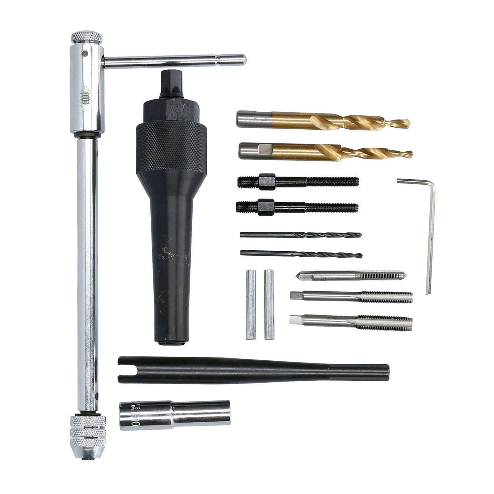 - Gewindeschneider M8 x 1,0 - M10 x 1,0 und 6,3 mm (1/4“) - 28 UNF zum Nachschneiden des Glühkerzengewindes und Halter für Gewindebohrer mit Ratschenfunktion