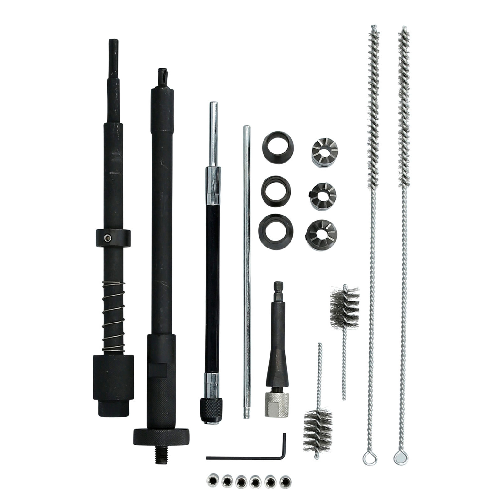 - inklusive 4 Reinigungsbürsten, Bürstenhalter, 3 Injektorsitzfräser, Fräserführung, Dichtring-Auszieher und Bürstenhalter-Verlängerung