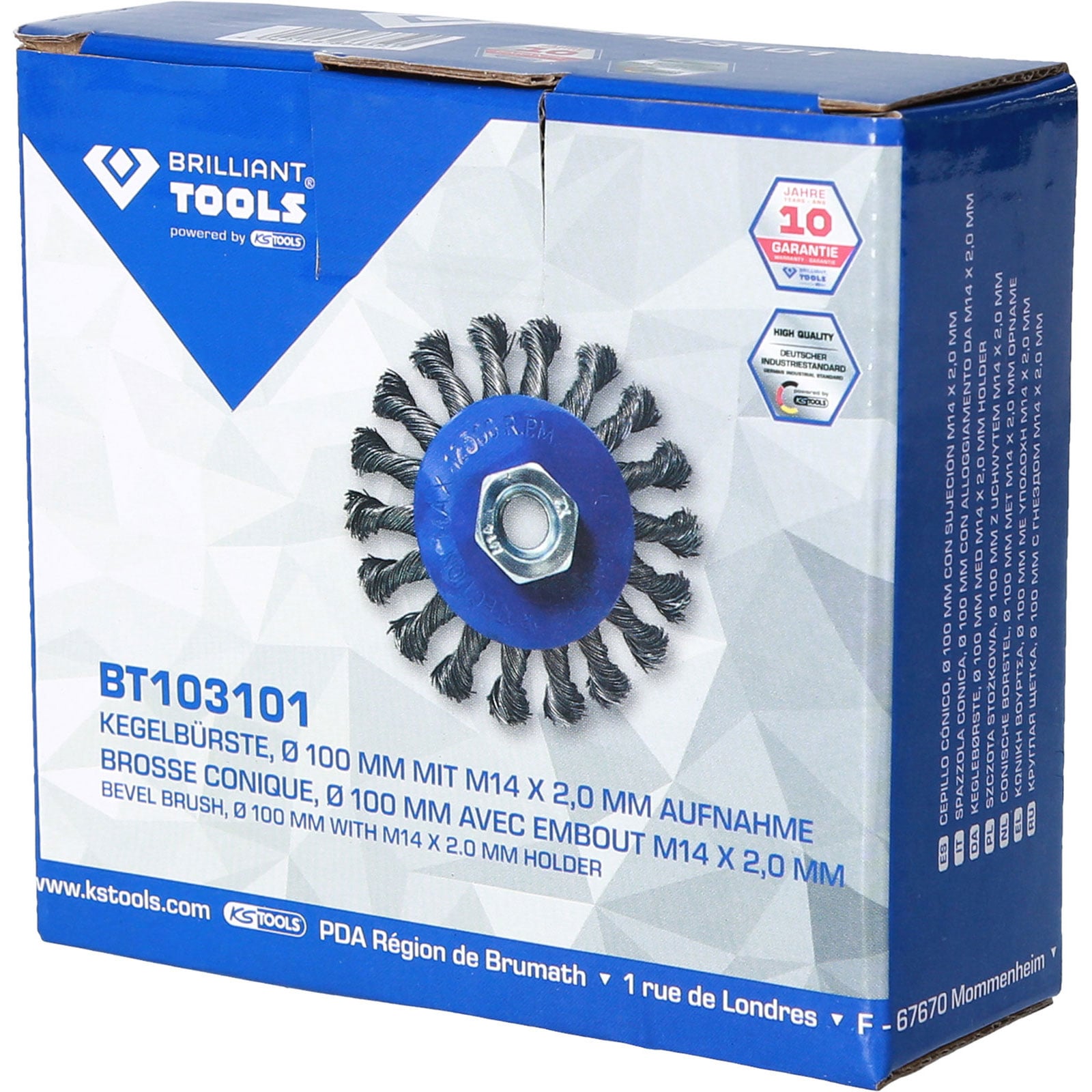 1x BRILLIANT TOOLS Kegelbürste Ø 100 mm mit M14 x 2,0 mm Aufnahme