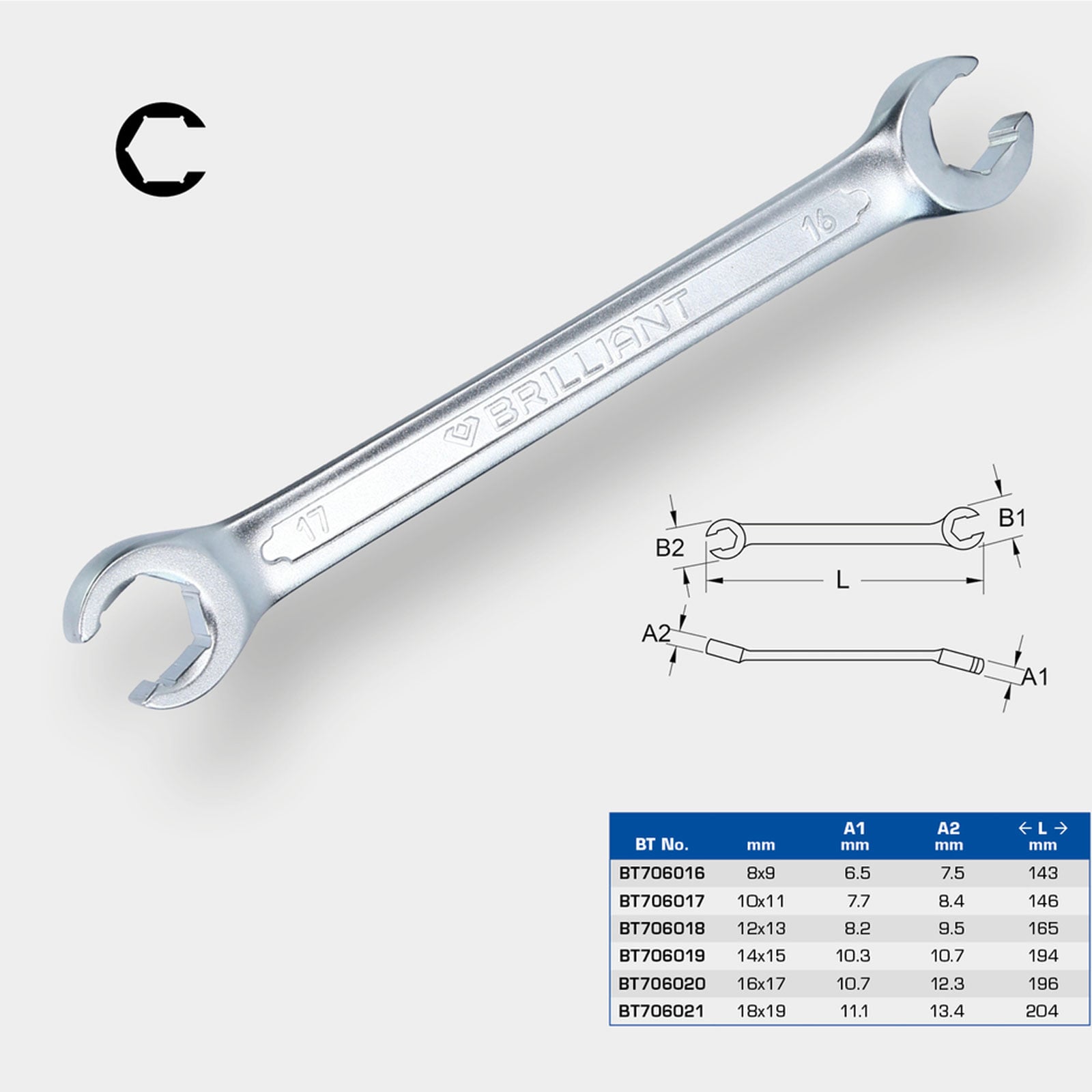1x BRILLIANT TOOLS Leitungsschlüssel 8 x 9 mm