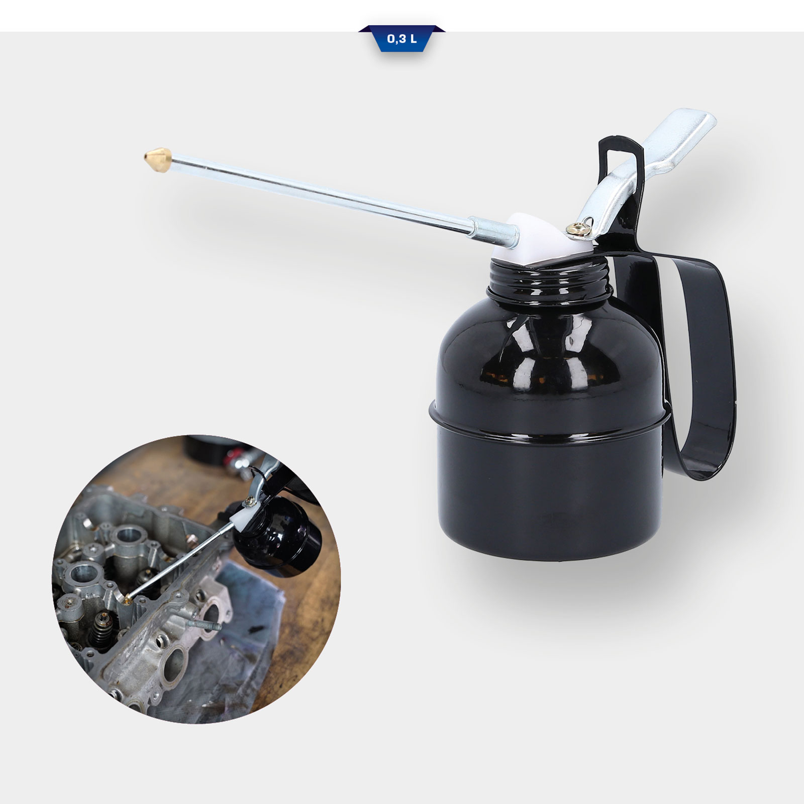 Die BRILLIANT TOOLS Ölspritzkanne BT156917 ist bestens geeignet zum Ölen von schwer zugänglichen Stellen. Der Stahlblechbehälter wurde einbrennlackiert und hat ein Fassungsvermögen von 300 ml. Durch das starre Auslaufrohr sind auch schwer zugängliche Stellen bestens erreichbar. Über den chrombeschichteten Pumphebel lässt sich die Messing-Druckpumpe ordentlich dosieren.
