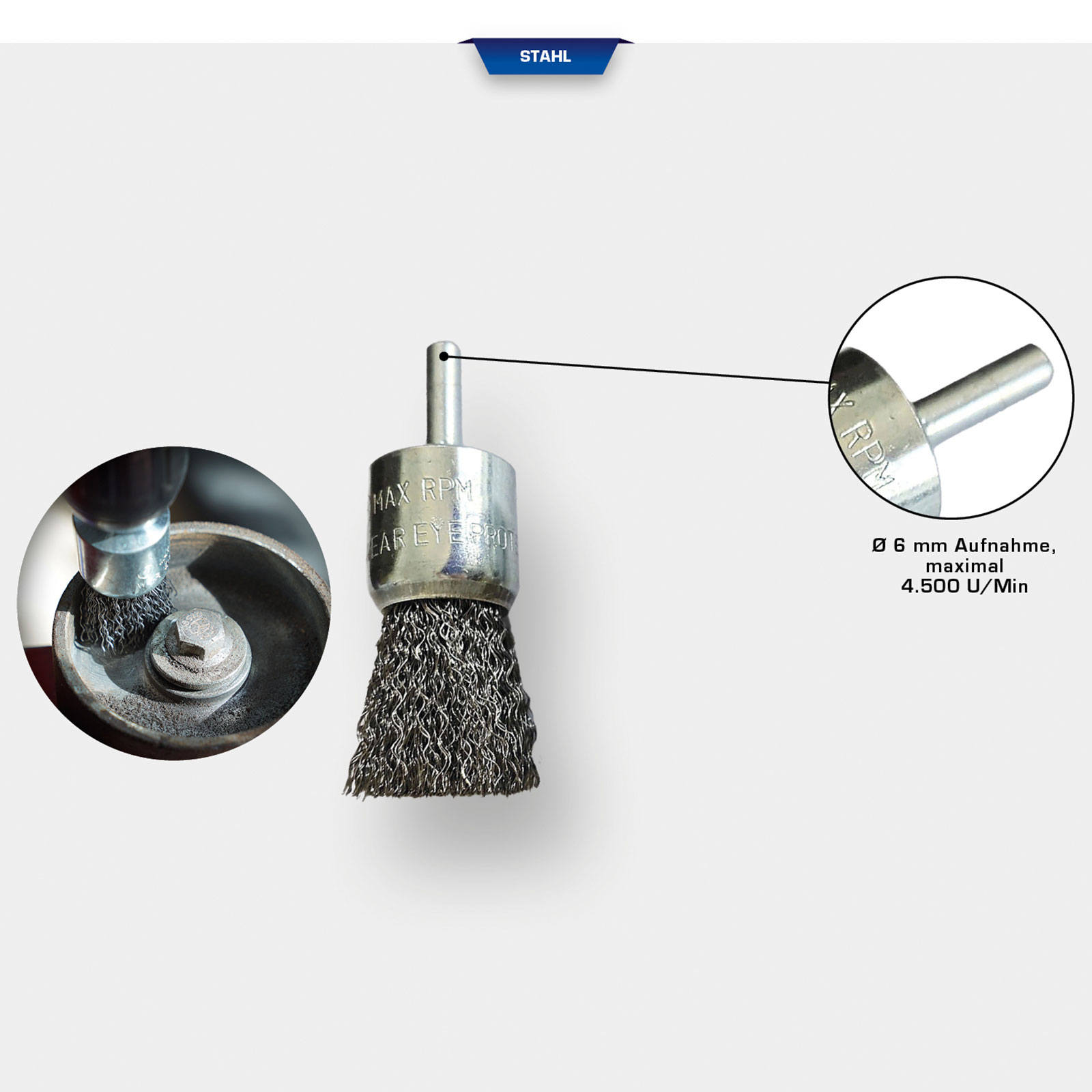 1x BRILLIANT TOOLS Pinselkopfbürste Ø 25 mm mit 6 mm Aufnahme