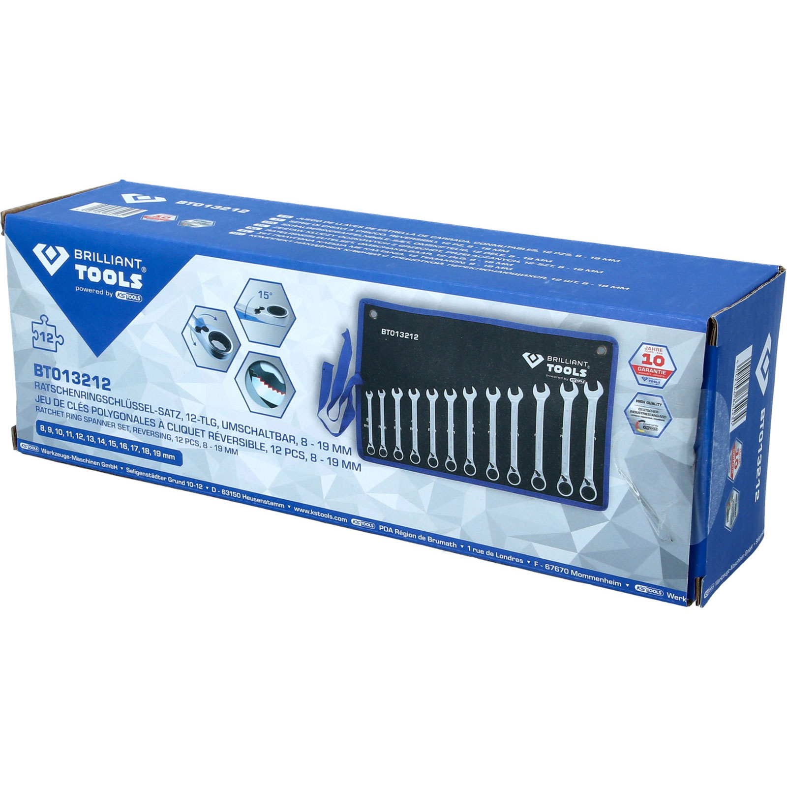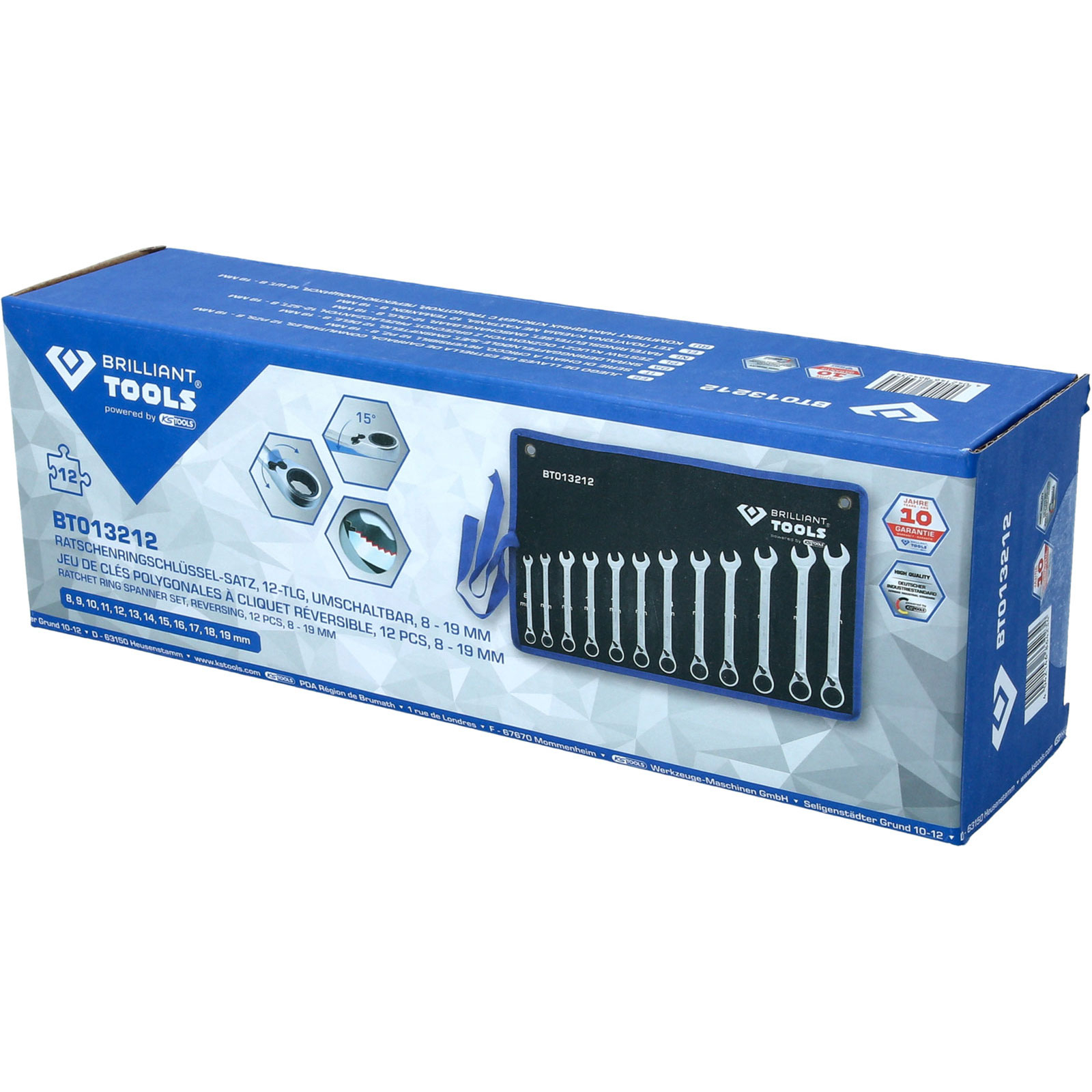 1x BRILLIANT TOOLS Ratschenringschlüssel-Satz 12tlg. umschaltbar 8 - 19 mm