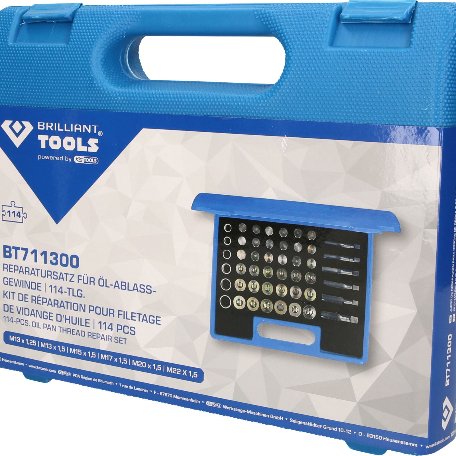 1x BRILLIANT TOOLS Reparatursatz für Öl-Ablassschrauben-Gewinde 114tlg.