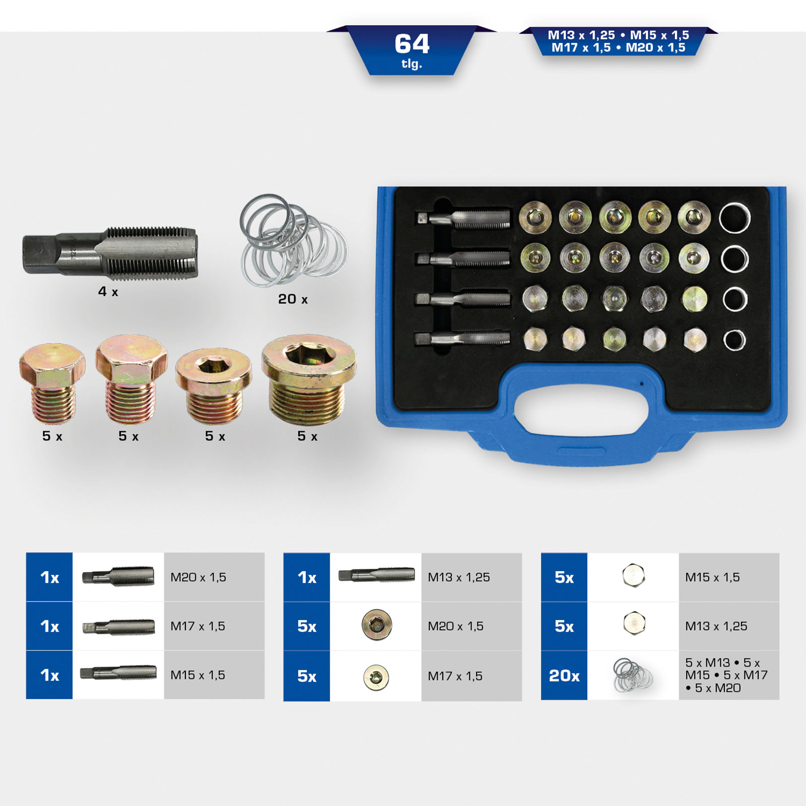 1x BRILLIANT TOOLS Reparatursatz für Öl-Ablassschrauben-Gewinde 64tlg.