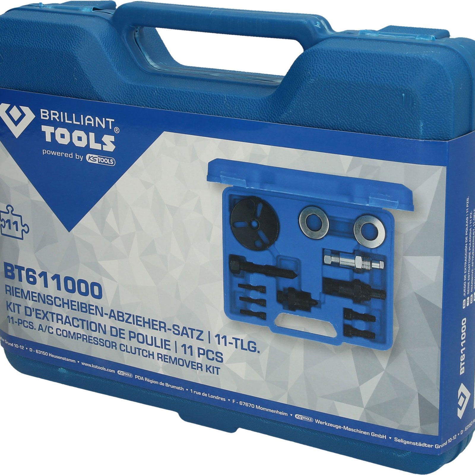Der BRILLIANT TOOLS Riemenscheiben-Abzieher-Satz BT611000 ist besonders zum Abziehen von Klimakompressor-Kupplungen geeignet. Er kann, je nach Anforderung, als 2- oder als 3-Armabzieher genutzt werden.