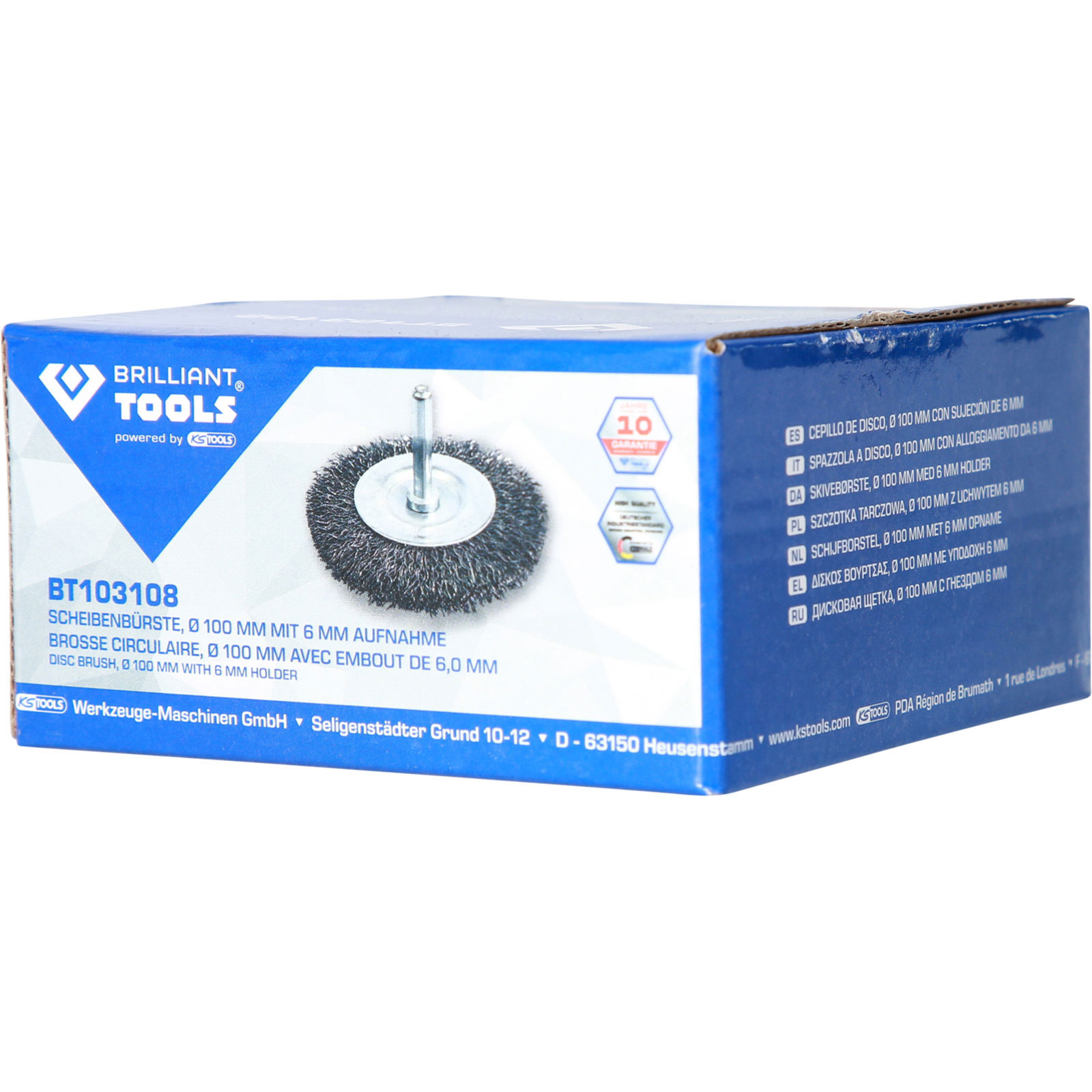 1x BRILLIANT TOOLS Scheibenbürste Ø 100 mm mit 6 mm Aufnahme