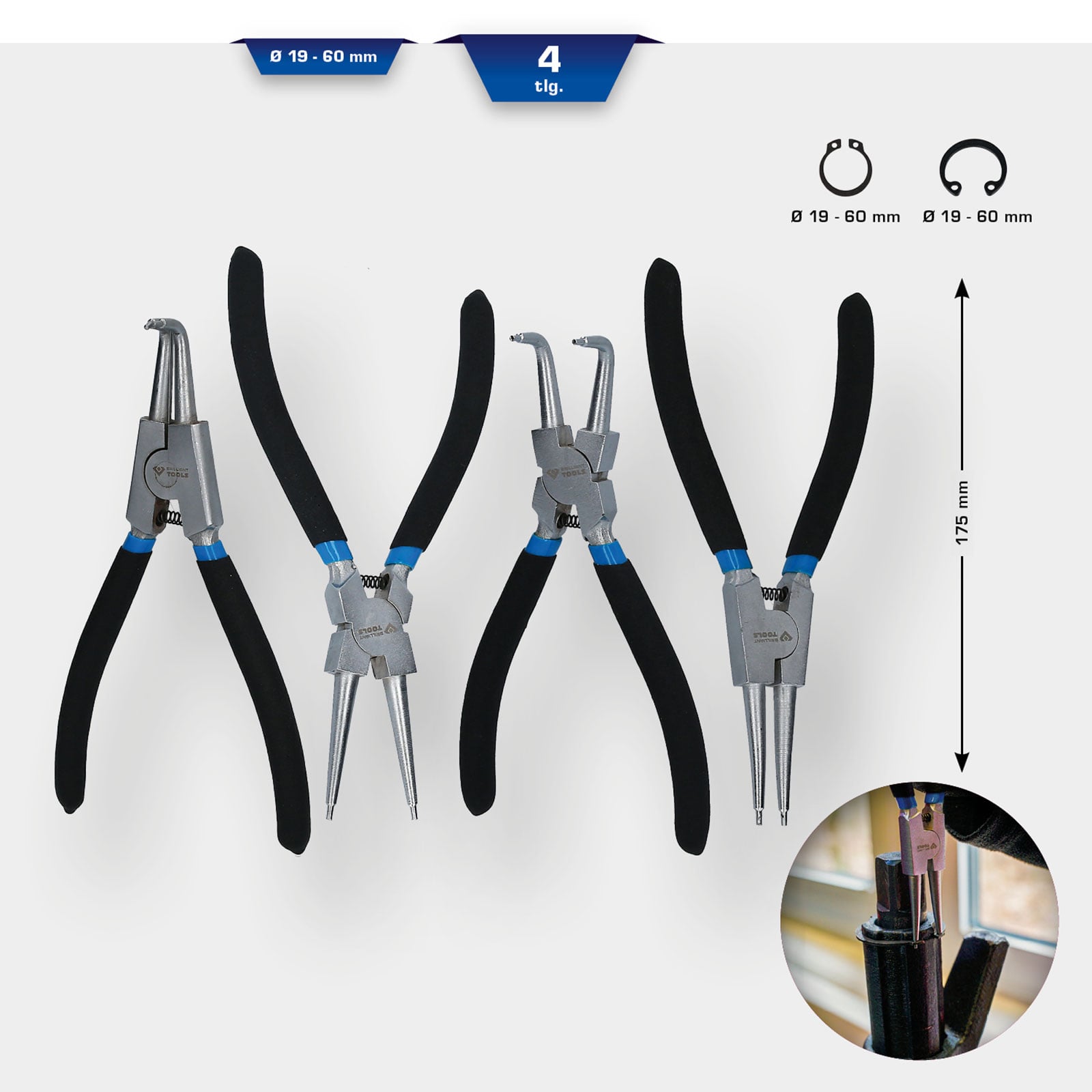 1x BRILLIANT TOOLS Seegeringzangen Satz 4tlg. 175 mm