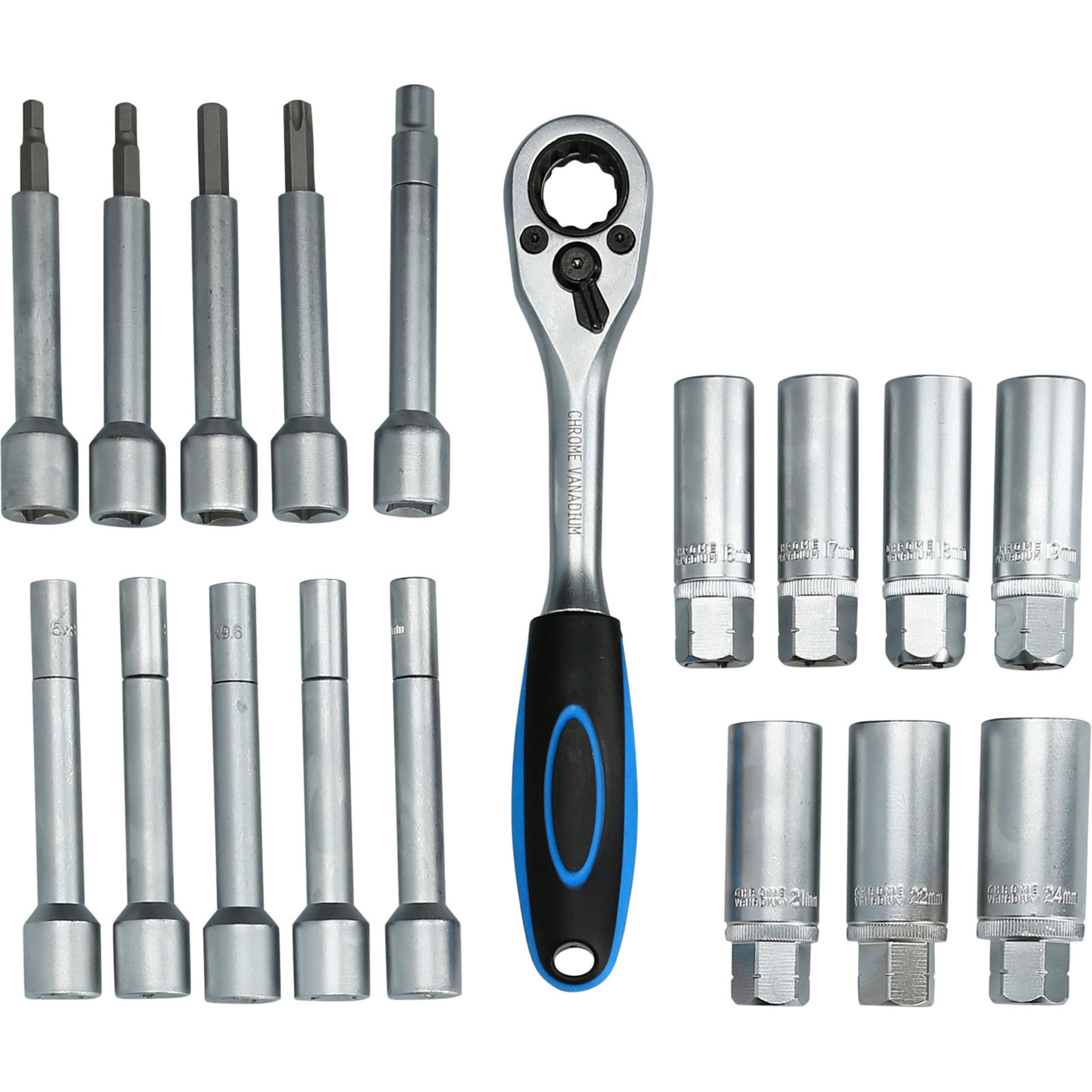 7 x Innensechskant-Bitstecknuss, 21 mm Aufnahme: 16 - 17 - 18 - 19 - 21 - 22 - 24 mm, Länge 12,2 cm