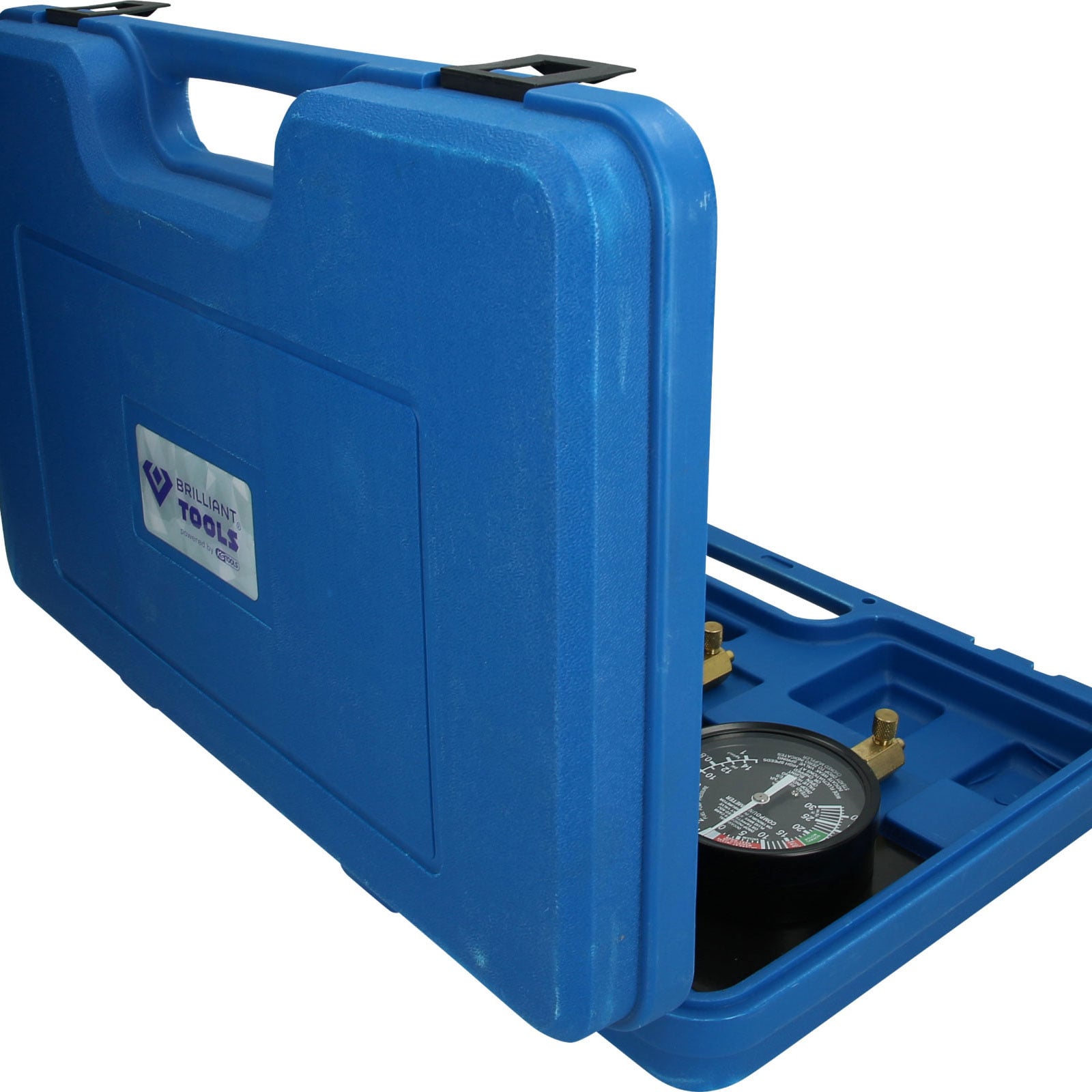 Der BRILLIANT TOOLS Synchron-Vergaser-Testgerät mit 4 Synchronuhren BT581200 ermöglicht nach Anschluss der Uhren an den Vergaser die Messung des Unterdrucks im Ansaugsystem. Die einfach zu montierenden Unterdruckuhren ermöglichen einen korrekten Abgleich über die entsprechenden Einstellschrauben am Vergaser. Eine gute Drosselklappensynchronisation erzielt ruhigen Motorlauf, Vibrationsarmut in allen Drehzahlbereichen, gute Beschleunigungswerte, eine hohe Endgeschwindigkeit, eine optimalere Verbrennung und weniger Kraftstoffverbrauch. Das Synchron-Vergaser-Testgerät ist in qualitativ höchster Ausführung und wird gut sortiert in einem Kunststoffkoffer geliefert.