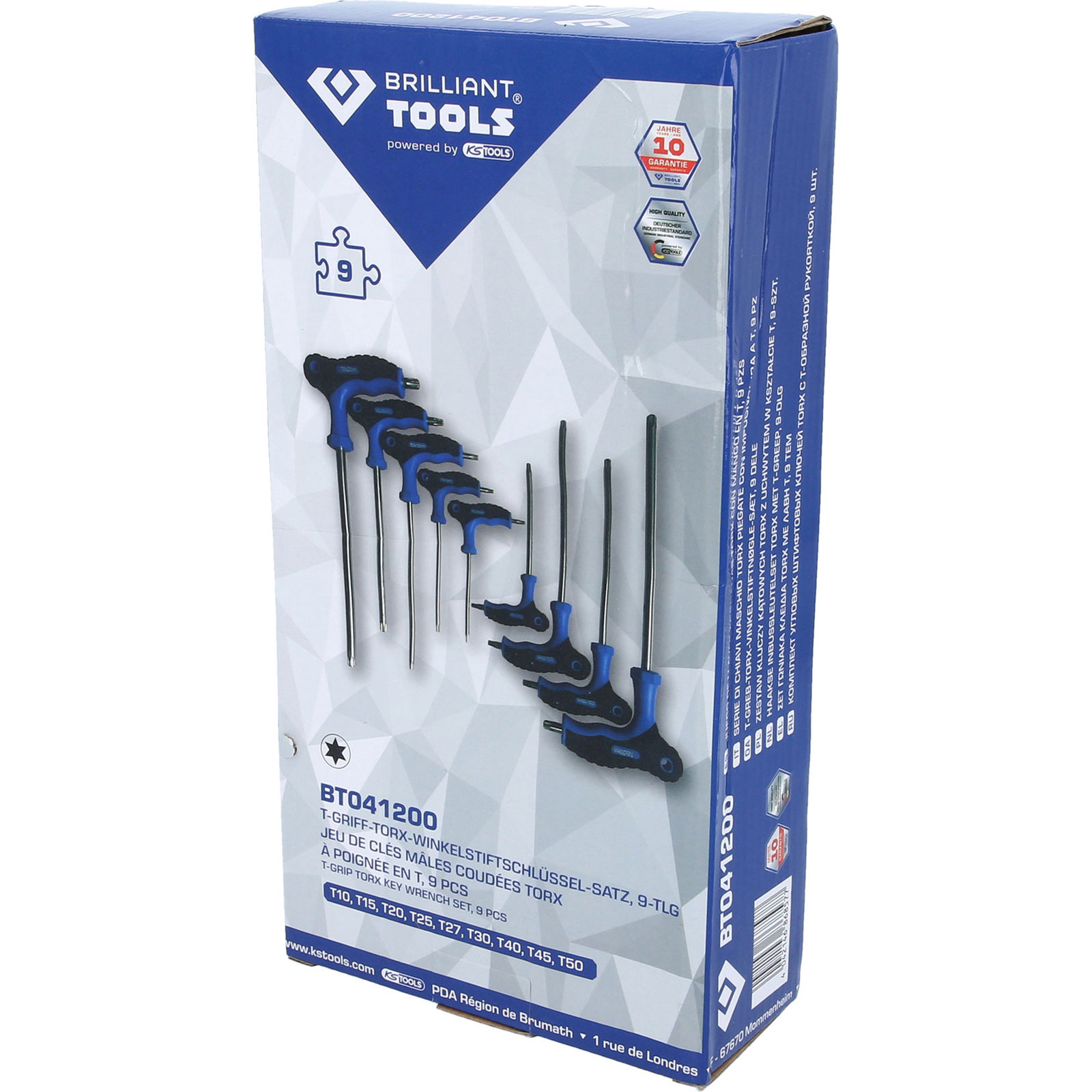 "BRILLIANT TOOLS T-Griff-Torx® mit Stirnlochbohrung-Winkelstiftschlüssel-Satz 9tlg. - BT041200"